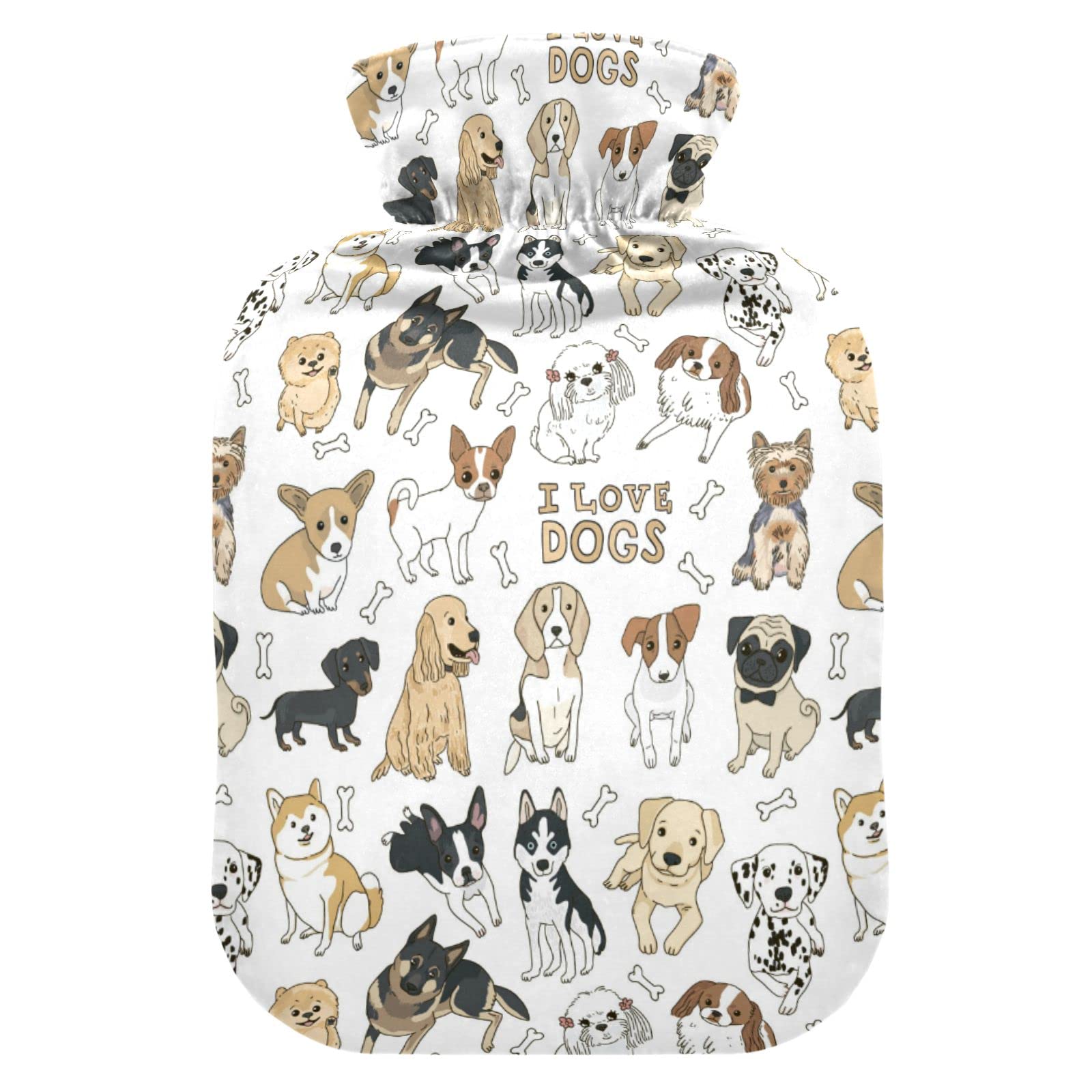 ?Warm tips? Fill a maximum of only two thirds.And the hot water bottle is machine washable.If you have any questions, please send us an email, we will answer you within 24 hours.?Great gift? The cute and attractive pattern on the bottle coating makes the hand feet warmer a great gift for parents, children and friends for birthday, father/mother's day, Thanksgiving, Christmas and New Year's Day.?Perfect size? With a large capacity of 1 l/2 l, which makes the heat bottle the best family helper to relieve sore muscles, stress, migraines, joints and menstruation.It can also be used as a cold water bag for fever children / men / women or reduces wound swelling.?Excellent leakage -proof? The sealed bottle closure helps to prevent leakage.A design with wide opening can easily pour hot water into the bottle, prevents the water from spraying and keeps it warm for about 6 hours.High quality material: The heat bottle covers are made of double-layer velvet (95 % polyester + 5 % spandex).The hot water bottle consists of PVC and the cap is made of PP.It can also be used as an ice cream bag or cold water bottle.?Warme Tipps? Maximal nur zu zwei Dritteln befüllen. Und die Wärmflasche ist maschinenwaschbar. Wenn Sie Fragen dazu haben, senden Sie uns bitte eine E-Mail, wir antworten Ihnen innerhalb von 24 Stunden. ?Tolles Geschenk?Das niedliche und attraktive Muster auf dem Flaschenüberzug macht die Handfüße wärmer zu einem tollen Geschenk für Eltern, Kinder und Freunde zum Geburtstag, Vater-/Muttertag, Erntedankfest, Weihnachten und Neujahrstag. ?Perfekte Größe? Mit großer Kapazität von 1 l/2 l, was die Wärmflasche zum besten Familienhelfer macht, um Muskelkater, Stress, Migräne, Gelenke und Menstruation zu lindern. Es kann auch als Kaltwasserbeutel für Fieber Kinder / Männer / Frauen verwendet werden oder reduziert Wundschwellungen. ?Hervorragend auslaufsicher? Der versiegelte Flaschenverschluss hilft, ein Auslaufen zu verhindern. Ein Design mit breiter Öffnung kann leicht heißes Wasser in die Flasche gießen, verhindert, dass das Wasser ausspritzt und hält Sie für ca. 6 Stunden warm. Hochwertiges Material: Die Wärmflaschen-Bezüge bestehen aus doppellagigem Samtstoff (95 % Polyester + 5 % Spandex). Die Wärmflasche besteht aus PVC, und die Kappe ist aus PP. Es kann auch als Eisbeutel oder Kaltwasserflasche verwendet werden.Hunde Wärmflasche mit Bezug Wärmflaschen zur Schmerzlinderung Wärmbeutel Heizflaschen für Wärme- und Kältetherapie, 2L