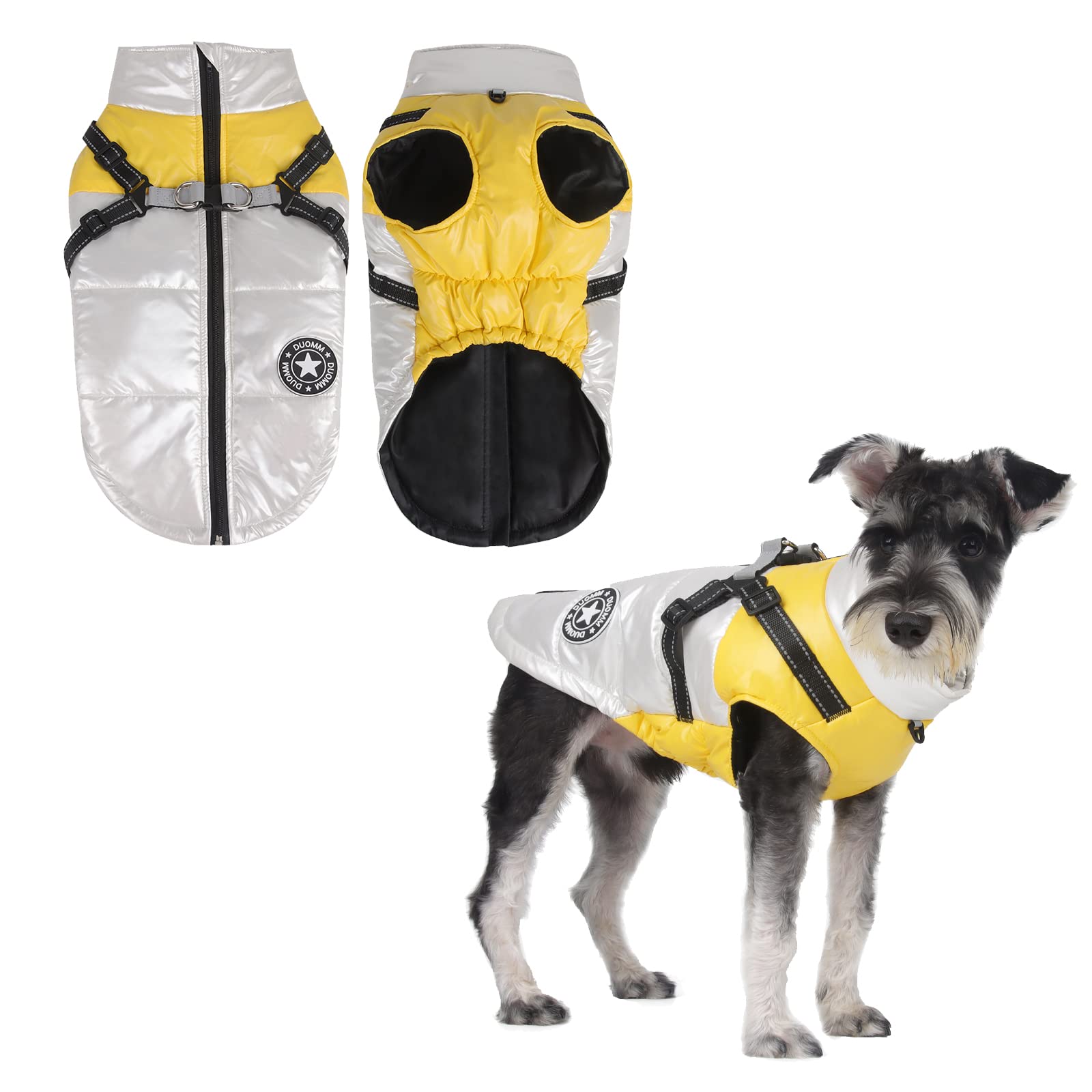 We recommend measuring the back length, the chest size and the neck circumference of your dog before buying and then selecting the correct size according to our size table.To ensure a comfortable fit, please leave scope 1-3 cm. Dog jacket for the winter, waterproof dog coat, reflective vest, windproof jacket Specification of the waterproof dog coat Vest Cloth: Material: waterproof coating and cotton Color: pink yellow orange blue Sizes: M: Back length: 30 cm chest size: 44 cm neck circumference: 32 cm L: Back length: 35 cm chest size: 50 cm neck circumference: 36 cm XL: Back length: 40 cm chest size: 55 cm neck circumference: 41 cm 2xl: back length: 45 cm chest circumference : 61 cm neck circumference: 46 cm Recommended weight of the dog: M: 2.5-4 kg L: 4-5.5 kg XL: 5.5-7 kg 2xl: 7.0-10 kg Feature of the waterproof dog winter jacket: --- Double-row zipper on the back for the fine adjustment of the case for better warmth.Micro -adjustable breast design for a better fit on the body of your dog and a flattering fit for small and large bellies. --- Soft, thick padded inner layer offers great warmth and comfort, the good belly cover protects your dog's belly from wind, snow or other outdoor elements. --- Reflective Vest Clothes has a waterproof coating to protect your dog from rain and is also suitable for wearing daily. Warm note: 1.Please allow little color difference due to the different camera or lighting. 2.0-1in error of the measurement is an appropriate range due to different measurement methods.2 in 1 dog winter jacketWaterproof dog jacket for small to medium -sized dogs are equipped with a waterproof and breathable upper material, which can be worn on rainy days alone as a dog coat and can be combined with a soft fleece feed for additional heat as a winter jacket on colder days.Reflective DesignYou get reflective waterproof dog winter coat very striking in the dark, keep your dog safely at night and keep away from any danger in the dark.That your puppy gets wet and it is also suitable for wearing daily.D-ring designThe dog winter coat has 2 D-rings and is very easy to attach to the leash.The breast snaps and the belt band secure the jacket on the dog and prevent the clothes from falling slightly and increg safety.Dog winter jacket sizesize M 30 cm back length, 44 cm breast and 32 neck, 2.5-4 kg. Large L 35 cm back length, 50 chest and 36 cm neck, 4-5.5 kg. Size xl 40 cm back length, 55 chestand 41 cm neck, 5.5-7 kg. size 2xl 45 cm back length, 61 chest and 46 cm neck, 7.0-10 kg. Sizes m to 2xl. Please make sure that you measure the length and waist of your dog andthat have current weight as a reference.High quality materialOur waterproof dog coat is made of high-quality waterproof coating and cotton material that is waterproof, rainproof and snow festival, which can keep your puppy warm in cold winter. We offer 4 sizes (M, L, XL, 2XL) and 4Colors (pink yellow orange blue) for you to choose from.Wir empfehlen Ihnen, vor dem Kauf die Rückenlänge, den Brustumfang und den Halsumfang Ihres Hundes zu messen und dann die richtige Größe gemäß unserer Größentabelle zu wählen. Um eine bequeme Passform zu gewährleisten, lassen Sie bitte 1-3 cm Spielraum. Hundejacke für den Winter,wasserdichter Hundemantel,reflektierende Weste, winddichte Jacke Spezifikation des wasserdichten Hundemantels Vest Cloth: Material:Wasserdichte Beschichtung und Baumwolle Farbe: Rosa gelb Orange Blau Größen: M: Rückenlänge: 30 cm Brustumfang: 44 cm Halsumfang:32 cm L: Rückenlänge: 35 cm Brustumfang: 50 cm Halsumfang: 36 cm XL: Rückenlänge: 40 cm Brustumfang: 55 cm Halsumfang: 41 cm 2xL:Rückenlänge:45 cm Brustumfang:61 cm Halsumfang:46 cm Empfohlenes Gewicht des Hundes: M: 2.5-4 KG L: 4-5.5 KG XL: 5.5-7 KG 2XL:7.0-10 KG Merkmal der wasserdichten Hundewinterjacke: ---Doppelreihiger Reißverschluss auf der Rückseite zur Feineinstellung der Hülle für bessere Wärme. Mikroverstellbares Brustdesign für eine bessere Passform am Körper Ihres Hundes und eine schmeichelhafte Passform für kleine und große Bäuche. ---Weiche, dick gepolsterte Innenschicht bietet große Wärme und Komfort, die gute Bauchabdeckung schützt den Bauch Ihres Hundes vor Wind, Schnee oder anderen Outdoor-Elementen. ---Reflective Vest Clothes hat eine wasserdichte Beschichtung, um Ihren Hund vor Regen zu schützen und ist auch für das tägliche Tragen geeignet. Warmer Hinweis: 1.Please erlauben wenig Farbunterschied aufgrund der verschiedenen Kamera oder Lichtumgebung. 2.0-1in Fehler der Messung ist ein angemessener Bereich aufgrund unterschiedlicher Messmethoden.2 in 1 HundewinterjackeWasserdichte Hundemanteljacke für kleine bis mittelgroße Hunde sind mit einem wasserdichten und atmungsaktiven Obermaterial ausgestattet, das an regnerischen Tagen allein als Hundemantel getragen werden kann und an kälteren Tagen mit einem weichen Fleecefutter für zusätzliche Wärme als Winterjacke kombiniert werden kann. Reflective DesignSie erhalten reflektierenden wasserdichten Hundewintermantel wird sehr auffällig in der Dunkelheit, halten Sie Ihren Hund sicher in der Nacht und hält weg von jeder Gefahr in der Dunkelheit.Wasserdichte Hundejacke Jacke hat eine wasserabweisende Beschichtung, auch wenn es regnet, kann es verhindern, dass Ihr Welpe nass wird, und es ist auch für das tägliche Tragen geeignet. D-Ring DesignDer Hundewintermantel hat 2 D-Ringe und ist sehr einfach an der Leine zu befestigen. Die Brustschnalle und das Gurtband sichern die Jacke am Hund und verhindern, dass die Kleidung leicht herunterfällt und erhöhen die Sicherheit. Hundewinterjacke GrößeGröße M 30 cm Rückenlänge, 44 cm Brust und 32 Hals,2.5-4 KG.Größe L 35 cm Rückenlänge, 50 Brust und 36 cm Hals,4-5.5 KG.Größe XL 40 cm Rückenlänge, 55 Brust und 41 cm Hals,5.5-7 KG.Größe 2XL 45 cm Rückenlänge, 61 Brust und 46 cm Hals,7.0-10 KG.Größen M bis 2XL.Bitte stellen Sie sicher, dass Sie die Länge und Taille Ihres Hundes messen und das aktuelle