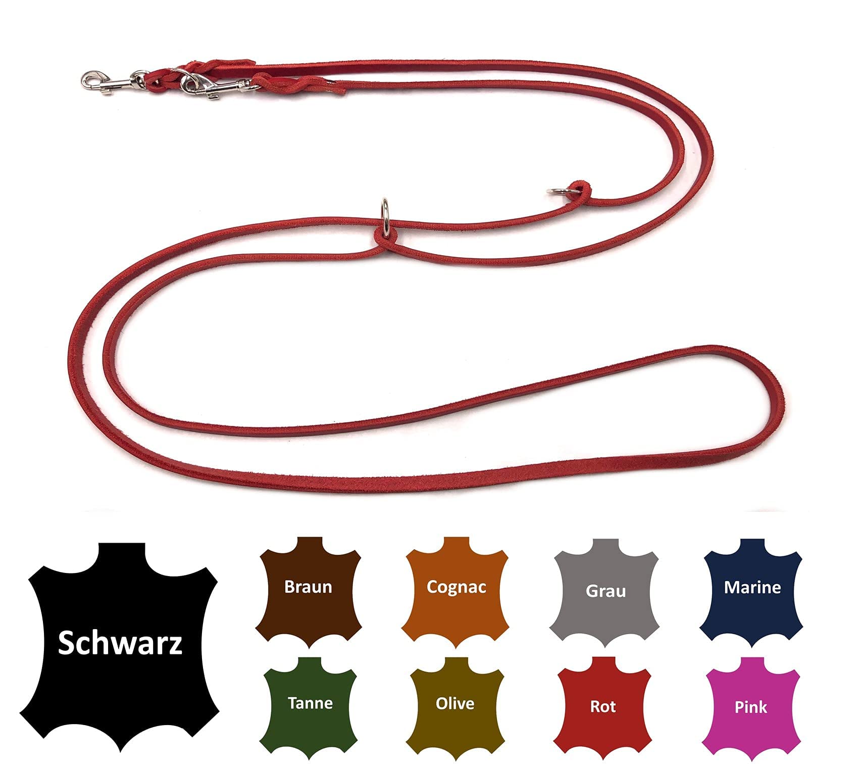 Hundeleine Fettleder kleine Hunde große Hunde 2m 2,40m 2,80m 3,50m 5m Doppelleine verstellbar (2m X 8mm, Rot) 2m X 8mm Rot