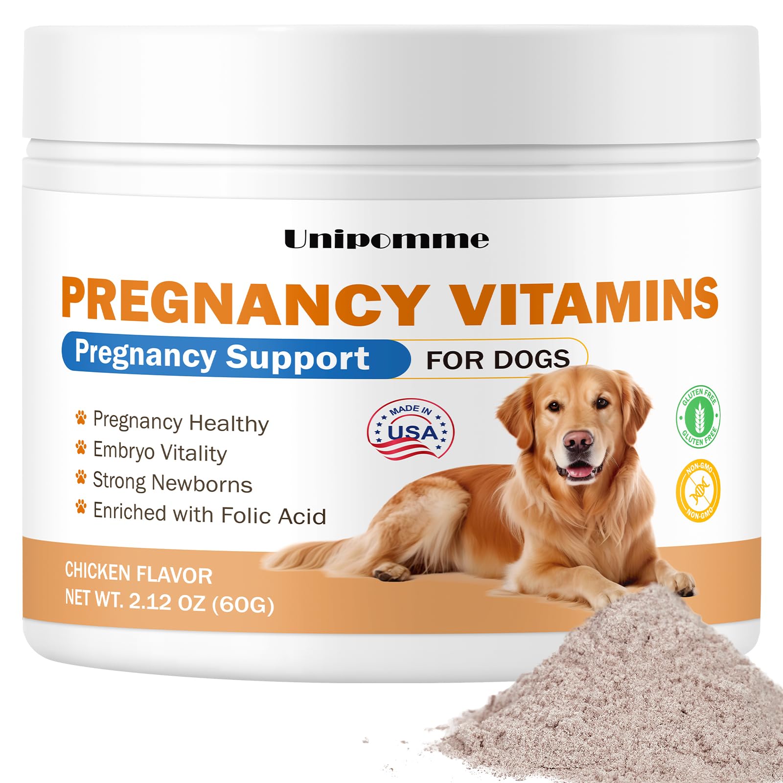 You're lovingly preparing for your dog's next big milestone — welcoming a litter of adorable puppies. But as you watch her rest, you wonder: Is she getting all the nutrients she needs to stay strong and healthy throughout her pregnancy? Providing the right support now can make all the difference for her well-being and her pup's development. Discover the Power of Dog Prenatal Vitamins: A Natural Boost for Your Dog's Health and Her Growing Pups Our specially formulated dog prenatal vitamins are packed with essential nutrients like folic acid, vitamin B, and Magnesium to promote healthy fetal development and ensure your dog stays energized and strong during this crucial time. Each dose is enriched with vital minerals and vitamins that support bone growth, brain development, and overall immune health, giving her puppies the best possible start in life. By incorporating these prenatal supplements into your dog's diet, made with natural ingredients and free from corn, soy, grains, or artificial flavors and colors, you can help your furry friend maintain her strength, reduce pregnancy-related discomfort, and improve her recovery after birth. Give her the support she deserves and ensure her puppies are born healthy and happy.Delicious Taste: Dogs love the taste of our supplement, making it easy to add to their daily routine, Should you have issues with your dog's vitamins and supplements? Simply reach out to us so we can improve your overall experience. Strength for Mom's Recovery and Well-Being - Pregnancy is exhausting — even for your dog. Our B-vitamin-rich formula helps restore her energy, strengthen her immune system, and support her body's recovery. With every chew, you're giving her the care she deserves — so she can continue being the loving, devoted mom she's always been. Supporting Mom's Milk and Puppy Nourishment - The bond between a mother and her puppies is precious. Our prenatal vitamins are enriched with essential nutrients to promote milk production, ensuring her puppies are nourished and comforted. Nurturing New Life with Essential Nutrients - Every heartbeat, every tiny paw forming inside her — your dog's puppies rely on her for everything. Our prenatal vitamins provide vital folic acid, iron, and iodine to support healthy fetal development, helping your dog's little ones grow strong and thrive. Empowering Care for Expecting Mothers - Imagine your loyal companion, giving her all to nurture a new life. Our prenatal vitamins are designed to give her the strength and support she needs throughout this journey. Specially formulated to meet her rising energy demands, these supplements help ensure your beloved dog feels strong, healthy and cared for.