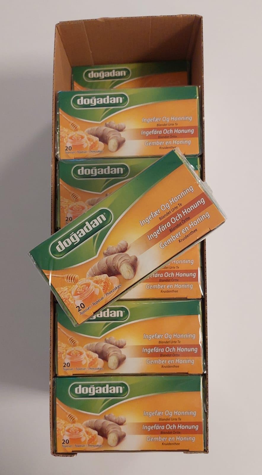 : Dogadan Herbal Tea Blend with Ginger and Honey, 12 Boxes x 20 Bags. Instructions: Infuse the tea bag in hot water (100 C) for 3 to 5 minutes.Dogadan Herbal Tea Mixture Ginger and Honey 12 Boxes x 20 Sachets.Description du produit Dogadan Tisane Melange D'Herbes Gingembre et Miel 12 Boites x 20 Sachets Mode d'emploi Faire infuser le sachet de thé dans de l'eau chaude (100 C) pendant 3 à 5 minutesDogadan Tisane Melange D'Herbes Gingembre et Miel 12 Boites x 20 Sachets.Dogadan Tisane Melange D'Herbes Gingembre et Miel, 20 Sachets (Lot de 12)