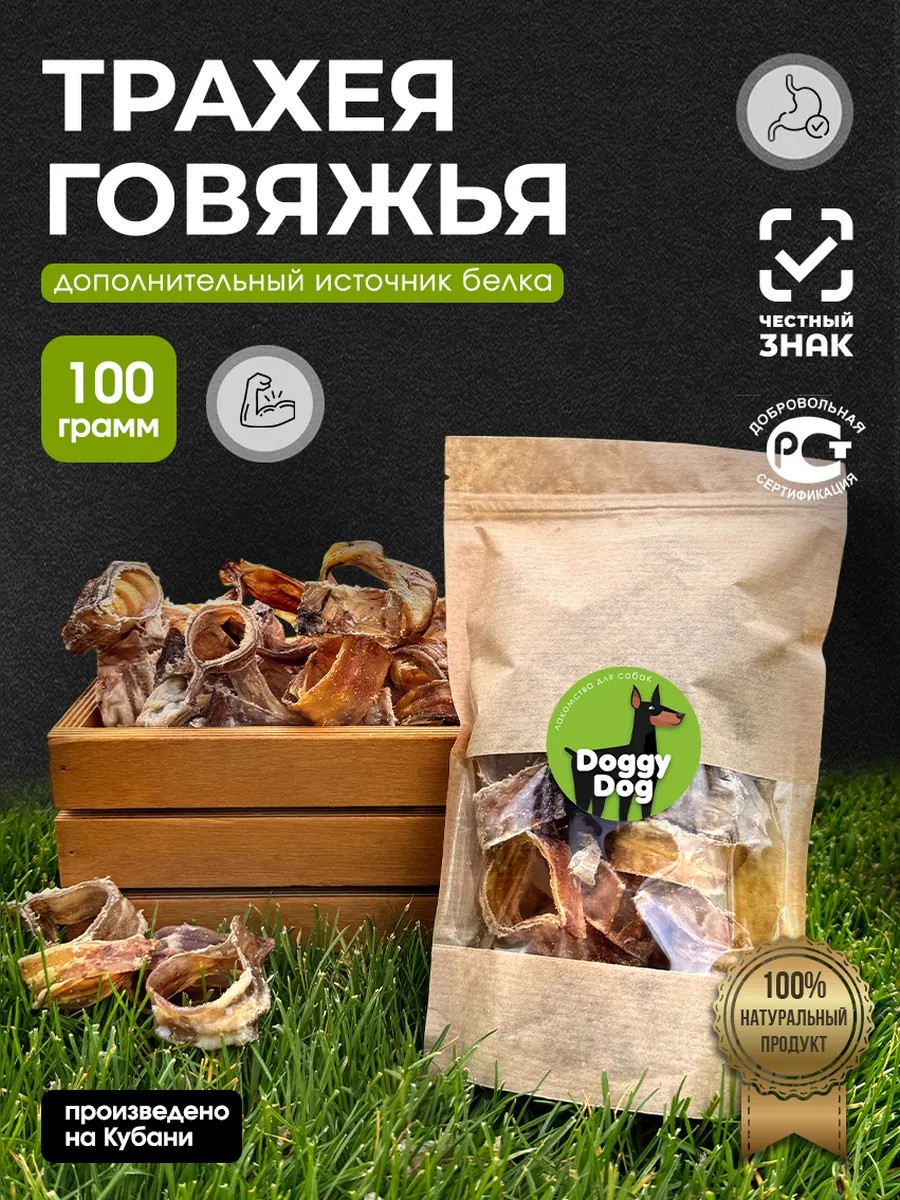 DoggyDog Лакомства для собак трахея говяжья 100г