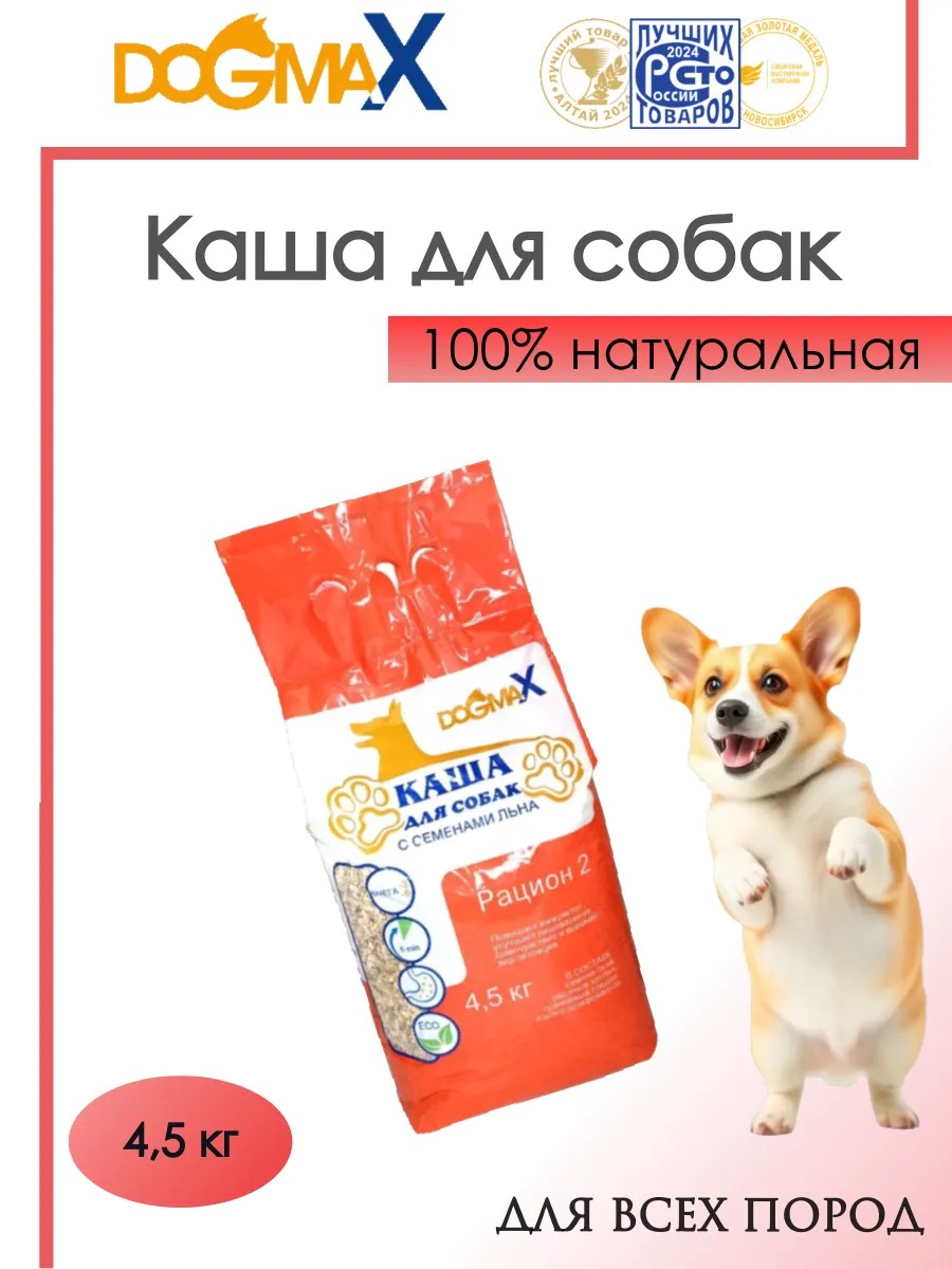 DOGMAX Diet 2 is a natural cereal porridge for dogs, created in Altai from environmentally friendly ingredients in accordance with GOST, based on laboratory tests.