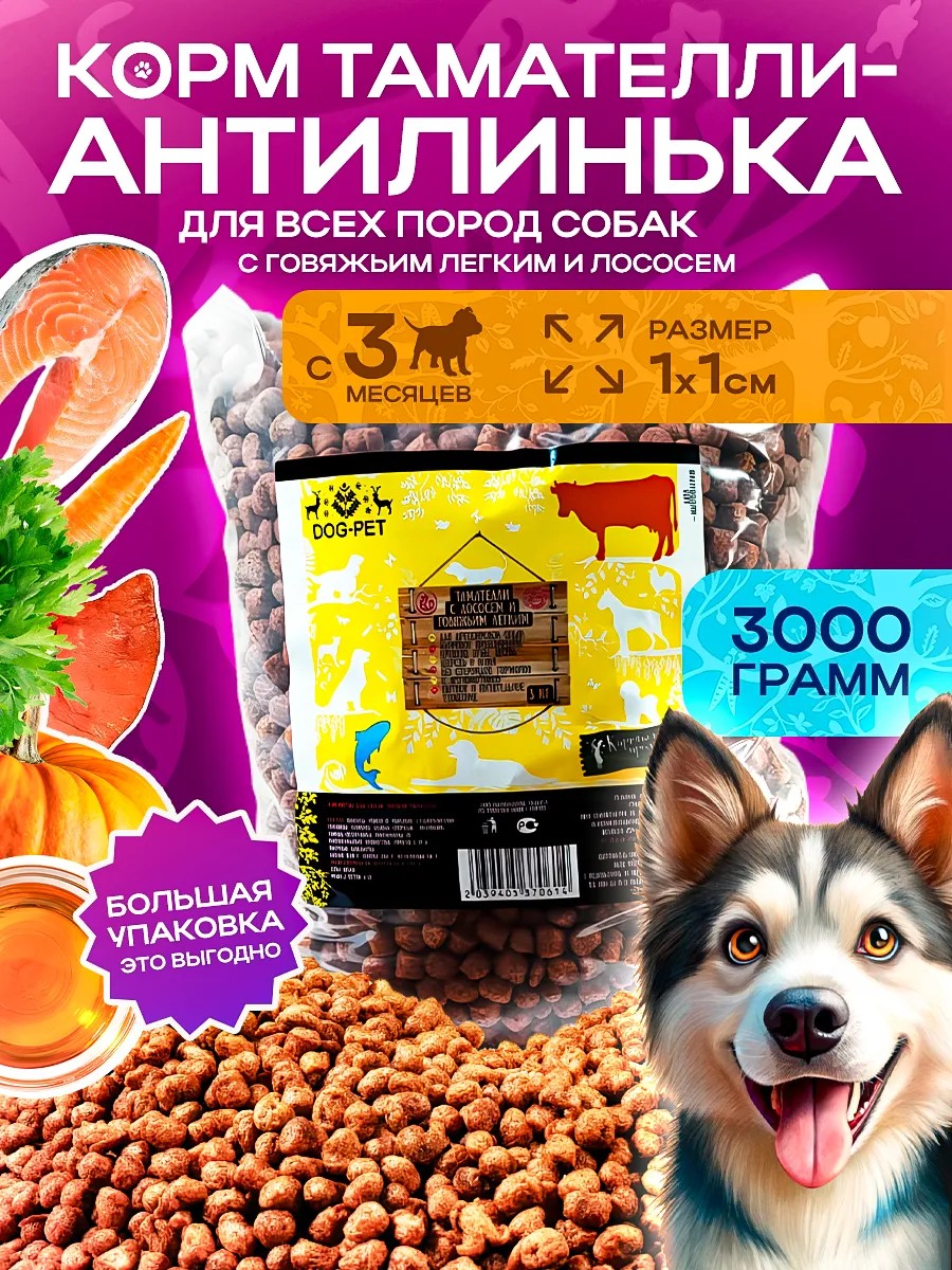 DogPET Корм и лакомство для собак с говяжьм легким и лососем 3 кг .