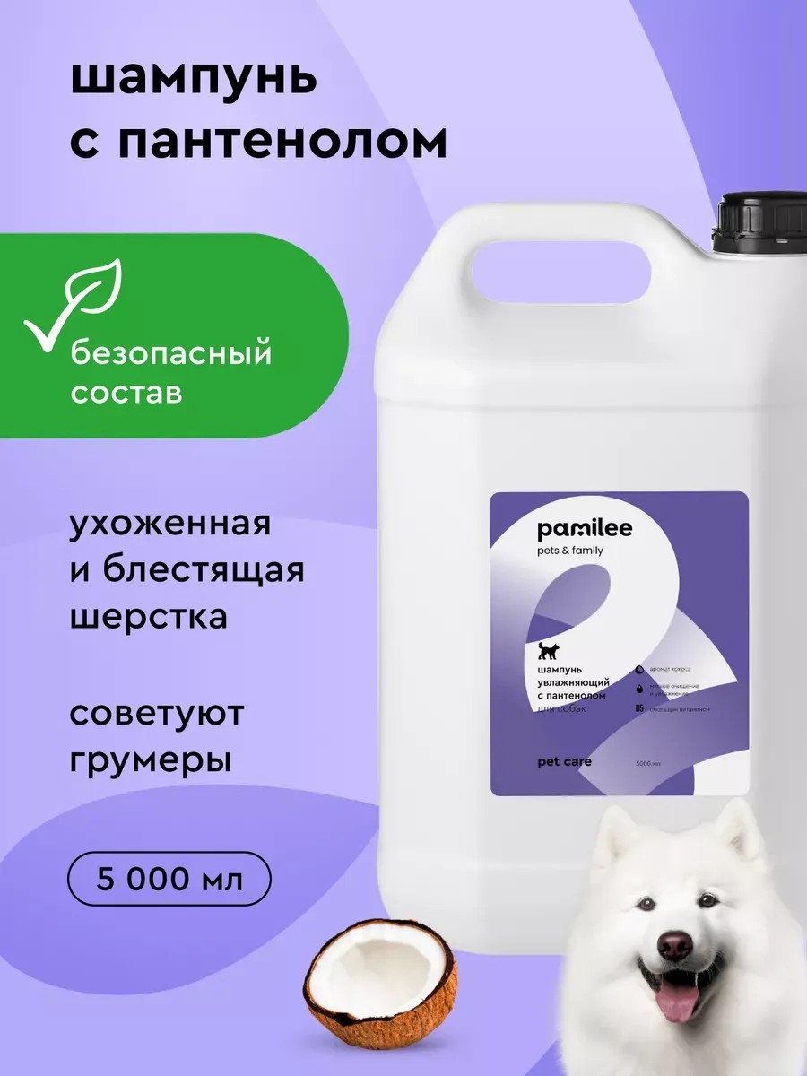 Мягкий гипоаллергенный шампунь для шерсти собак Pamilee для домашнего ухода против сухости и зуда. Подавляет рост патогенных бактерий, отшелушивает ороговевшие клетки кожи, увлажняет и питает. Ненавязчивый приятный аромат фруктов избавляет от запаха псины. Профилактика перхоти. Профессиональный шампунь подходит для любого типа шерсти: для белой, рыжей и темной шерсти, для длинношерстных, короткошерстных и гладкошерстных пород собак, для мелких и крупных пород. Универсальный шампунь отмывает шерсть любой породы с подшерстком и без: шпица, йорка, терьера, мопса, корги, бигля, мальтийской болонки, овчарки и других пород. Подходит для мытья щенков от 6 месяцев. После использования шерсть становится ухоженной, чистой и мягкой. Гиполергенный шампунь для животных имеет натуральный эко состав. Безопасен для окружающей среды, человека и животных. Удобная крышка-дозатор способствует экономному расходу средства. Шампунь представлен в трех сочных фруктовых ароматах: кокос, банан, тропический фрукт. Поможет избавиться от запаха животного. Шампунь обладает выраженными уходовыми, а не лечебными свойствами.