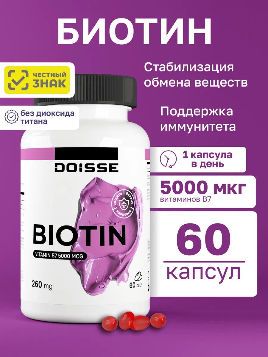 Биотин 5000 мкг – стандартная дозировка для поддержки волос и ногтей.