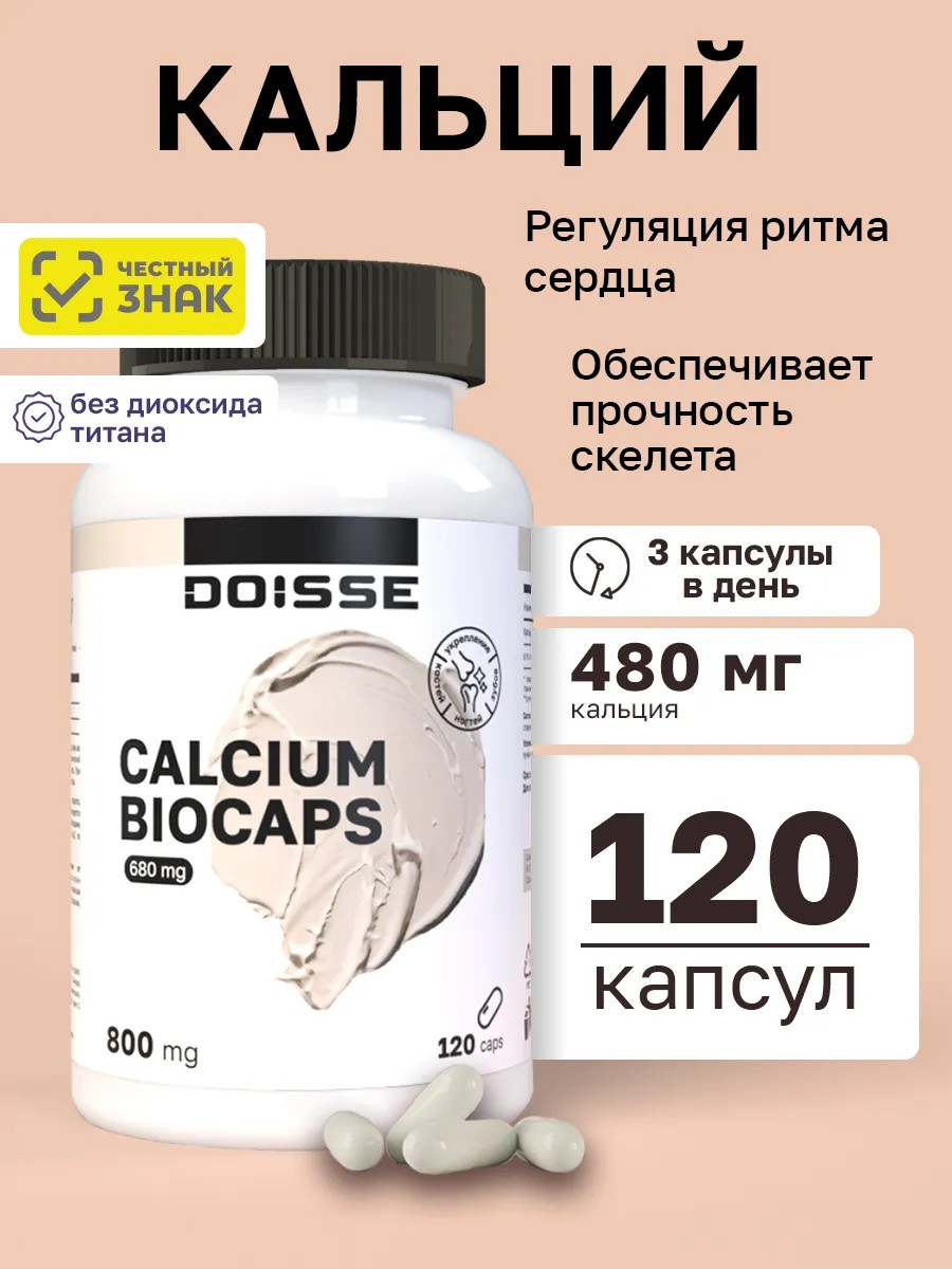 "CALCIUM BIOCAPS" от DOISSE - это биологически активная добавка к пище, разработанная для поддержания здоровья и укрепления организма. Каждая капсула содержит 680 мг трикальция цитрата, легко усваиваемого источника кальция, который играет важную роль в формировании и поддержании крепких костей и зубов. "CALCIUM BIOCAPS" может быть особенно полезен для детей в период активного роста, а также для женщин и мужчин, заботящихся о здоровье своих костей. Кальций также необходим для нормального функционирования сердечно-сосудистой системы и участвует в процессах передачи нервных импульсов. Добавка "CALCIUM BIOCAPS" выпускается в удобной упаковке, содержащей 120 капсул, что обеспечивает длительный курс приема.