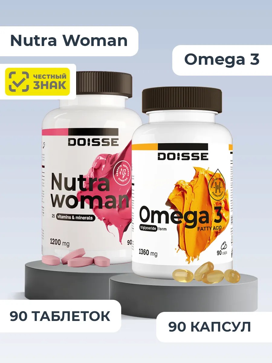 Комплектация"Нутра вумен" 90 таблеток – 1 банка; "Омега 3" 90 таблеток – 1 банка