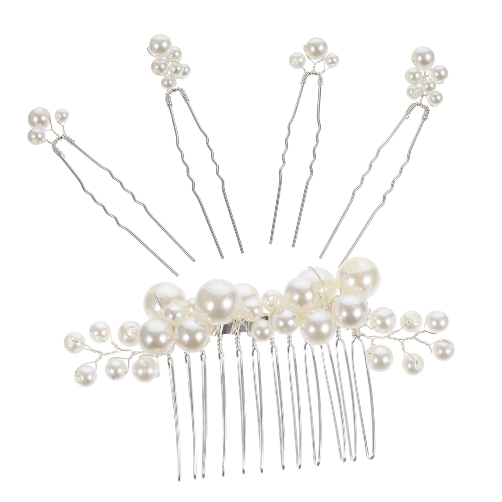 Package Include 1 x wedding hair comb 4 x hairpins Features -Material:Metal, pearl hair comb clip -Size:9.00X4.30X2.00cm/3.54X1.69X0 pearl clips for hair. -Color:Silver pearl hair pin -Size:7.50X1.30X0.60cm/2.95X0.51X0 hair combs for women accessories. - Using metal and pearl materials, these hair accessories for bride are light weight, very sturdy, can be used for long period pearl headpiece. - Beautiful hair accessories for women, you can send this pearl headdress set as a present option for your family or friends bride headpiece. - Pearl design of the hair comb and hairpins can match with your different outfits and hairstyles, make you attractive and impressive even in the crowd wedding hair comb. - Wedding hair pieces are suitable for various hairstyles, easy to use, and portable to take, convenient to store bride hair comb. - The bridal headpiece set can be applied for wedding, engagement, prom, evening, satisfy your demands better vintage hair accessories. Goods Information wedding hair clips These hair accessories can be good decorations for wedding, party, meeting, appointment, also good for daily wearing.bridal headpiece Simple, classic color design, with pearl decoration, the bridal hair comb and hairpins are easy to clip, can hold your hair in a better way, show your charm, and make you very attractive even among the crowdGirl hair clips-- pearl design of the hair comb and hairpins can match with your different outfits and hairstyles, make you attractive and impressive even in the crowd. Pearl hair accessories for women-- the wedding bride hair comb is easy to clip by the comb teeth design, can hold your hair very well. Pearl hair pin-- the bridal headpiece set can be applied for wedding, engagement, prom, evening, satisfy your demands better. Hair accessories for bride-- these headpiece for wedding decoration can be widely used for birthday, dating, anniversary, prom, performance, honeymoon. Wedding hairpin-- featured by pearl decoration, with simple but classic color, these hair accessories for women are very elegant delicate, show your beauty.