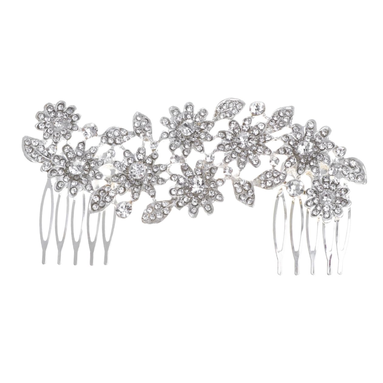 Package Include 1 * Bridal Wedding Flower Rhinestone Hair Comb Hair Accessories Characteristics - Material: hard alloy, rhinestone. - Size: about 11.8* 6cm /4.65* 2.4 inch.. - Color: mainly silver. - Fantastic hair accessories for Weddings, Proms, Parties or other special occasions Bridal hair comb. - It makes your look noble and add your charm Flower hair comb. - Crystal rhinestones decor flower style design alloy hair comb clip hair pin, very delicate and charming Bridal hair comb women. - The hair comb is easy to get in the hair and will assure a snug fit on various hair styles Women hair comb. - Works great with any hair styles for women of all ages Women hair clip. - and Wedding Crystal Rhinestones Decor Flower Hair Comb. Goods Description Bridal hair comb women Therefore, it will be a great for women who are into fashion trend.Flower hair comb The item is a fashion and delicate women's girls hair comb clip, which is mainly made of durable hard alloy material, and features crystal rhinestones decor flower design to make it more unique and charming.Women hair clip Besides, the hair comb clip is easy to get in the hair and will assure a snug fit on various hair styles