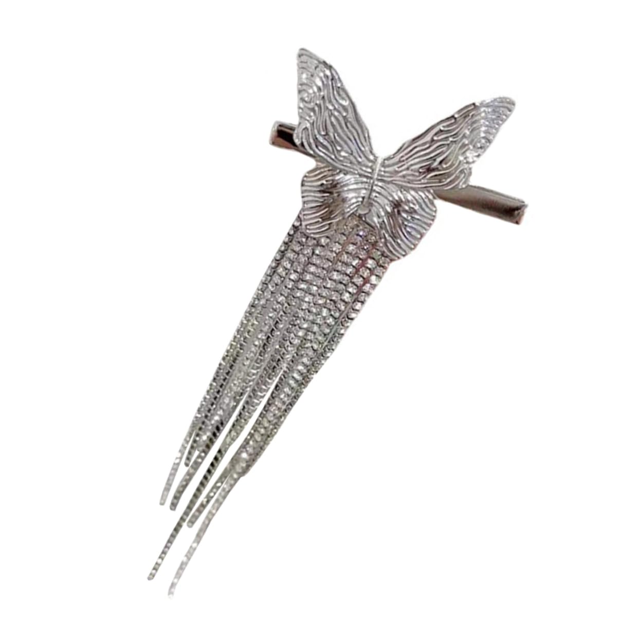 Package Include 1 x hair clip Characteristics -Material: Metal, alloy, copper , rhinestone rhinestone hair accessories -Size: 16.80X4.90X1.20cm/6.60X1.93X0.47 in butterflies tassel hair clip. -Color: Silver butterflies hairpins - Can be given as creative and meaningful to friends, exactly they will love them rhinestone hair clips. - Made of durable materials, the hair clip can be used for long and bring you a good mood rhinestone butterflies hairpins. - for adults and children, especially suitable for theme parties and other special festive rhinestone hairpin. - You will be comfortable to wear and it can help you hold your hair tightly. Suitable for women or girls rhinestone hair barrettes. - The rhinestone, tassel and butterflies design will be more charming and shining, you will gain more compliments at the party rhinestone hair decorations. Goods Description rhinestone hair decorations Meanwhile, it is charming and shiny, reliable and portable to carry, also can be delicate for you or your friends, for parties as well.Alligator Hairpin The lovely hairpin with butterflies design is comfortable to wear on your hair, without any pressure for yourHair clips: for party, masquerade, cosplay party, christmas party, stage performance and more. Hair decorations: the rhinestone, tassel and butterflies design will be more charming and shining, you will gain more compliments at the party. Vintage hair accessories: the hair accessories will make you vibrant, the tassel butterflies design also helps you get more attentions in public. Tassel hair clip: you can use and wear it for a long time, easy to carry and wear, practical and durable. Butterflies tassel hair barrette: shiny and gorgeous, full of fashion, will be favored by most of girls and women.