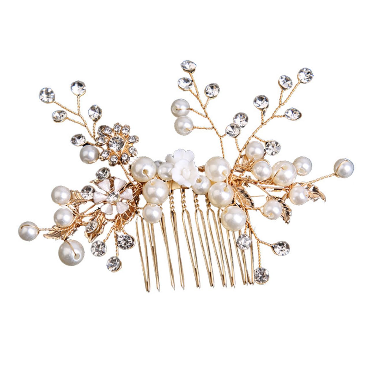 Package Include 1 x hair comb Features -Material:Alloy, pearl bridal hair accessories -Color:As Shown bride hair comb -Size:11.00X7.80X2.00cm/4.32X3.07X0 comb headband. - Use this pearl hair comb to highlight your appearance, make you look more charming and elegant bride hairpiece. - Classical in appearance, pearl hair comb is easy to match with other hair accessories and most hair colors pearl hair comb. - Our pearl hair comb shows your temperament and graceful, great choice for wedding, festival and other occasion wedding headpiece. - This hair comb headpiece can decoration and hold your bun hair tightly when you use in a right way flower girl headpieces for wedding. - This hair pin for hair bun is suitable for decorating different hairstyles, easily meet your needs wedding hair accessories. Goods Information bridal headpieces for wedding Elegant hair comb headpiece is made of pearls and alloy material and having the delicate detail decors, for bridal hairstyle decoration.pearl hair comb Unique pearls decorated design is chic, makes you more elegant and charming when wearing