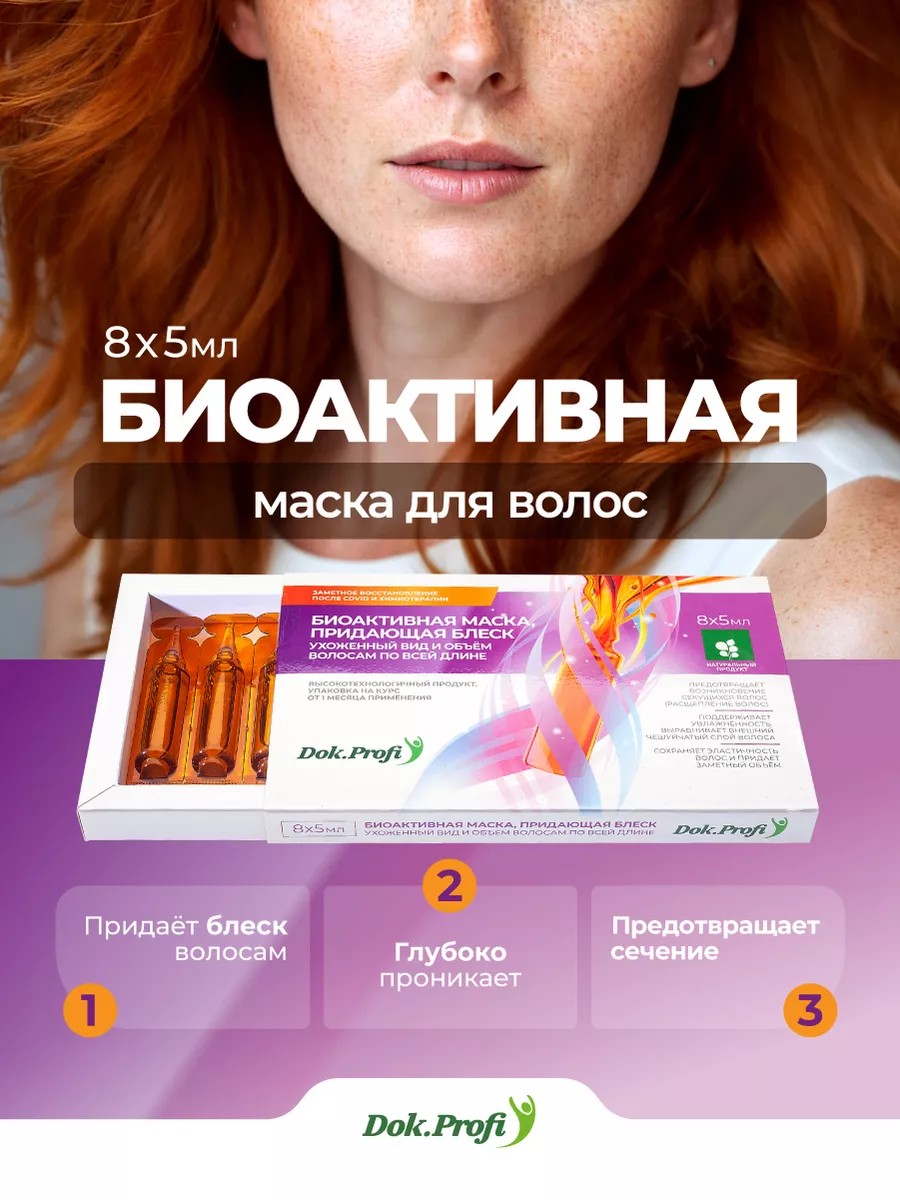 DokProfi Биоактивная маска-сыворотка для блеска и объема, 8 ампул