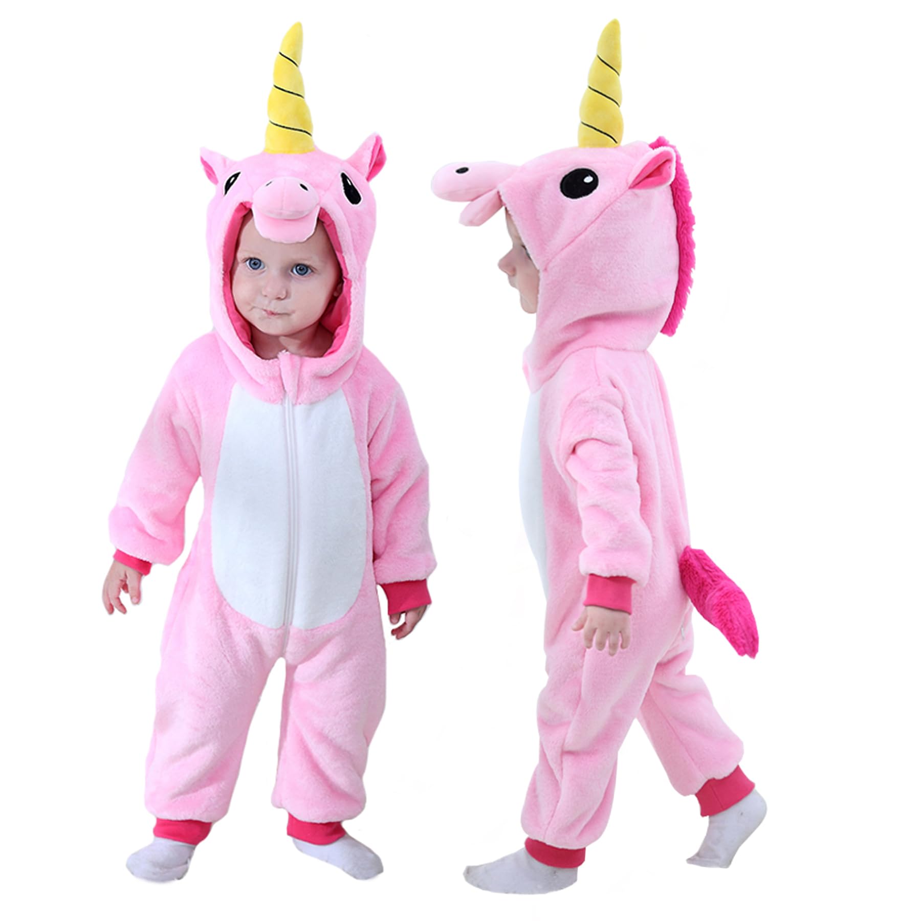 Doladola Baby Boy's Girl's Rompers Animal Hooded Onesie Toddler's Jumpsuits Autumn Winter Outfits 0-3 Months Pink Unicorn