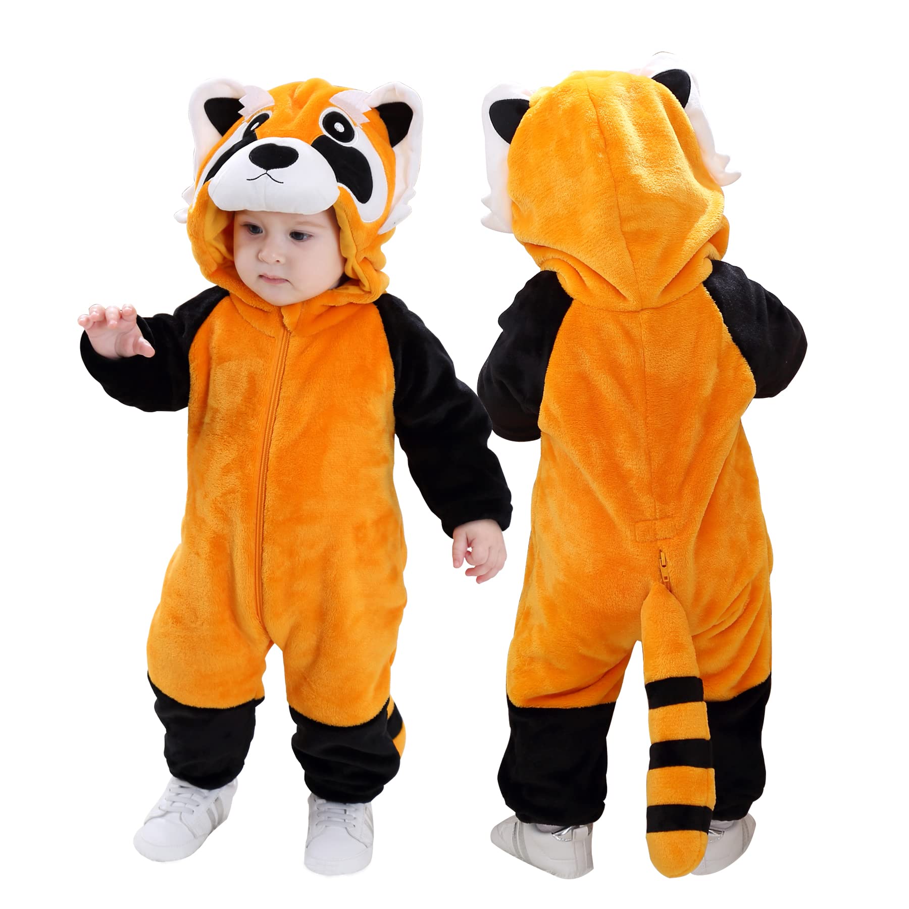 Doladola Baby Boy's Girl's Rompers Animal Hooded Onesie Toddler's Jumpsuits Autumn Winter Outfits 0-3 Months Raccoon