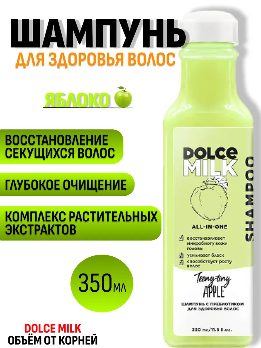 Шампунь для здоровья волос Дольче милк "Райские яблочки"-это средство для волос,которые нуждаются в особом уходе:для ослабленных,тонких, сухих на концах.Он поможет восстановить их красоту и здоровье,возобновить рост.Для нормальных волос - поддержать здоровое состояние и силу.Не только волосы нуждаются в особом уходе,но и кожа головы.В составе этого умного шампуня – растительный пребиотик и биоминеральный комплекс,которые восстанавливают и усиливают микробиоту кожи. Уникальный механизм действия «увлажнение через микробиоту» обеспечивает супергидратацию кожи головы.Экстракт яблока и молочные протеины заботятся о гладкости,мягкости и здоровье твоих волос,контролируют выделение избыточного секрета кожи головы.DOLCE MILK (Дольче милк)- это линейка уходовых протеиновых шампуней с фруктовыми ароматами и органическими составами.Шампунь для нормальных,тонких волос ухаживает,защищает цвет, увлажняет и приглаживает пушистость.Шампунь дольче милк подходит для окрашенных,мелированных и осветленных волос.Шампунь мандариновый восстановит волосы после химической завивки,выпрямления, долговременной укладки или тонирования.Дольче милк сохранит цвет,сделает волосы гладкими и обеспечит защиту от внешних факторов.Богатый витаминами растительный экстракт предотвращает окисление пигментов.Шампунь приятно пахнет,как яблочный смузи.Для максимального эффекта голову лучше мыть дважды: в первый раз смыть себум, грязь; во второй — глубоко очистить волосы и кожу головы.Средство идеально для частого использования или ежедневного применения.Его можно использовать каждый день для мытья чувствительной кожи головы.Бьюти - средства способствуют легкому расчесыванию волос по всей длине,укреплению, увеличению прикорневого объема и густоты, уплотнению и преображению!Облегчение распутывания,пышность, стимуляция роста,восстановление, уменьшение жирности корней и сухости концов,сохранение оттенков после окрашивания. Устранение сечения и ломкости,разглаживание.