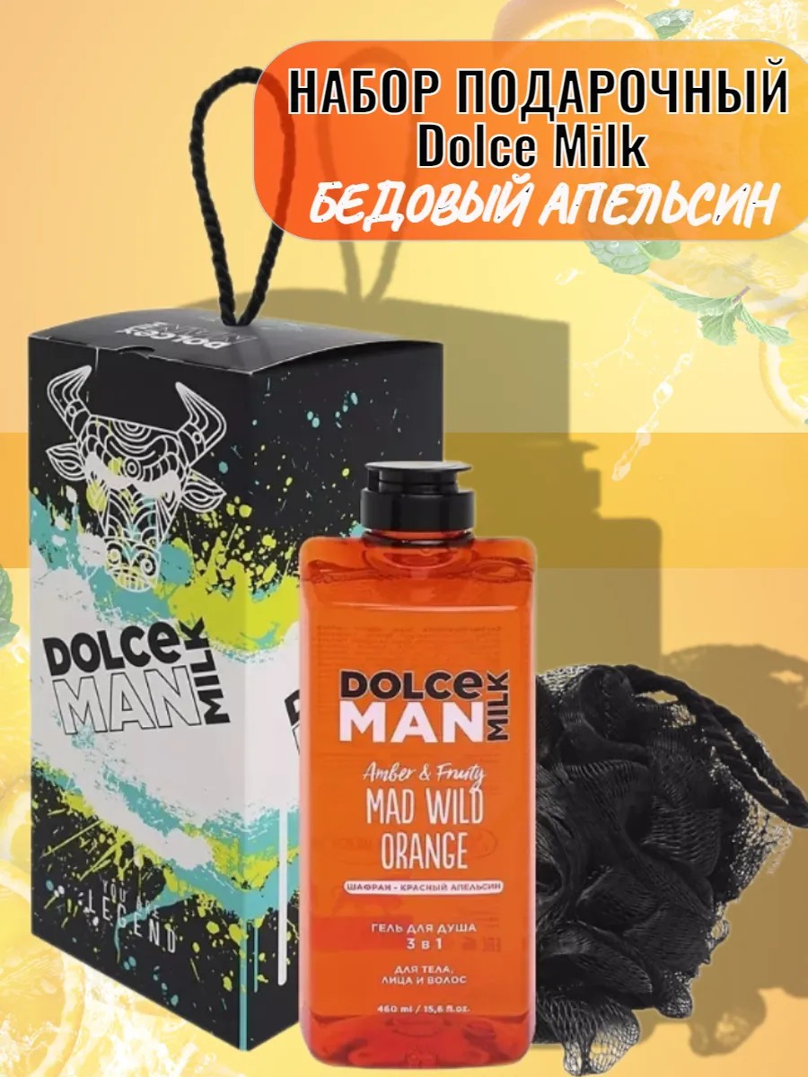 Набор подарочный красный апельсин и шафран Dolce Milk 3-в-1 для брутальных мужчин с горячим характером! Набор дольче милк состоит из геля для душа, губки для тела и подарочной коробки. Он станет отличным подарком на Новый год, 23 февраля, и любой другой праздник. Его оценит коллега, любимый мужчина, папа, друг или даже сын. Умная формула геля дольче милк разработана так, чтобы за один поход в душ можно было умыться, помыть тело и волосы, используя всего один флакон. Серия мужских гелей для душа обладает потрясающими ароматами. У каждого геля есть свое особое действие. 1. Сандал, уд и ром - это пряная роскошь. А еще активация роста волос. 2. Табак и ваниль - это теплота с приятной горчинкой. И борьба с выпадением волос. 3. Черный перец и цитрус - сама энергия и свежесть. И активизация роста волос. 4. Шафран и красный апельсин - аристократический дуэт. И волосы дольше сохраняют аристократичную свежесть. 5. Черный чай и кардамон, как теплые, но сильные объятия. И забота об объеме волос. 6. Текила, лайм и соль, звучит так, будто вас ждет соленый ветер и море веселья. Дольче милк гель мужской - лучшее средство для очищения. А волосы мягкие и блестящие как у серфера мечты. Мягкие растительные экстракты и молочный протеин ухаживают за кожей даже самых брутальных мужчин, чтобы они чувствовали только уверенность и комфорт. А сногсшибательные ароматы обладают магическим притяжением противоположного пола.