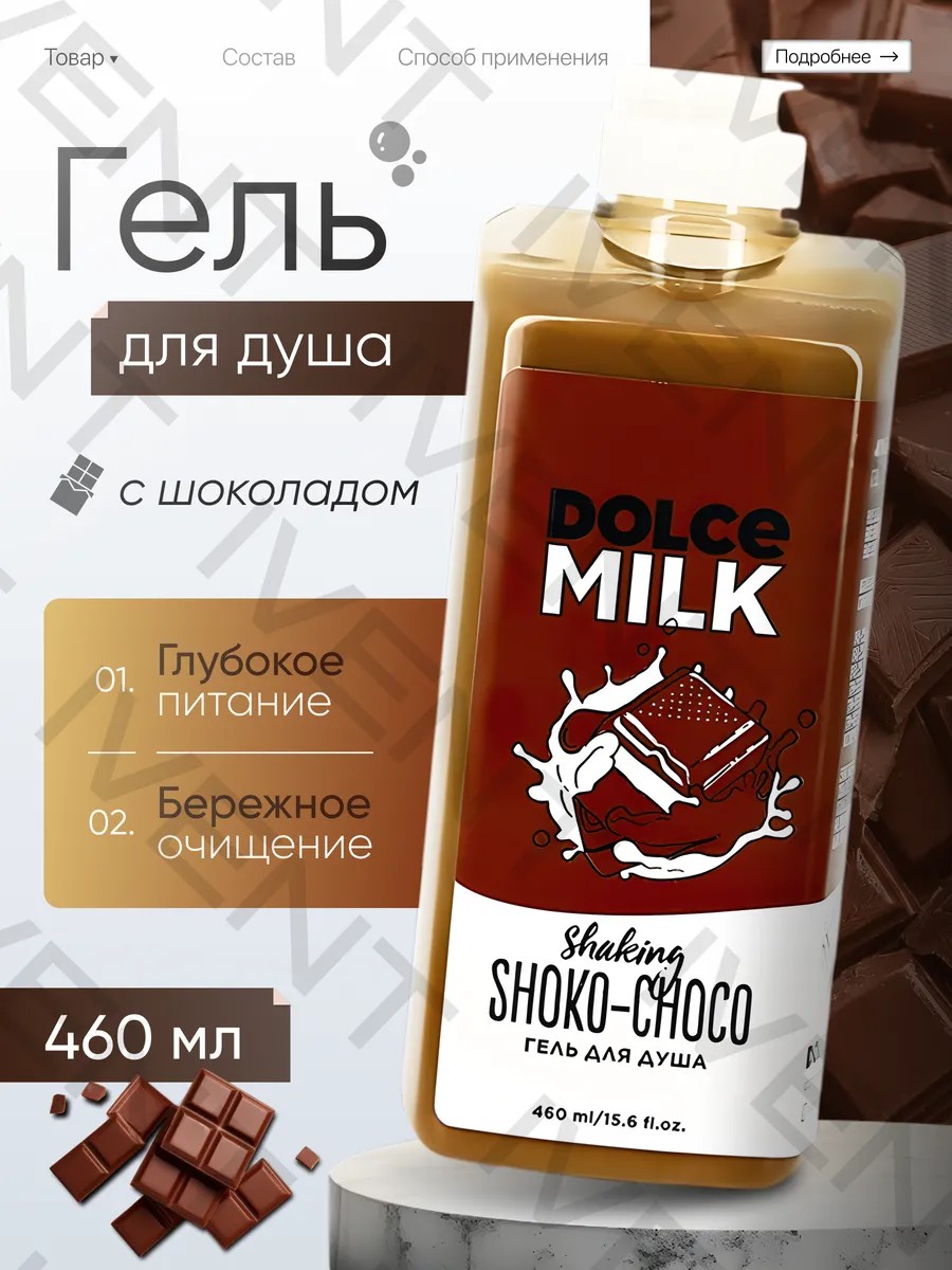 Гель для душа Dolce Milk шоколад расслабит и сделает так, чтобы ваша кожа выглядела превосходно. Гель дольче милк очищает, увлажняет, а также оставляет яркий аромат, который уносит прямиком на вершину десертно-фруктового блаженства. Гель для купания с добавлением фруктовых и растительных экстрактов помогает успокоить раздраженную кожу, удержать влагу и ускорить заживление. В составе геля для девушек всегда присутствуют два активных компонента — молочный протеин и фруктовый экстракт. В тандеме они оказывают успокаивающий, тонизирующий и противовоспалительный эффекты, придают заряд бодрости и свежести. Парфюмированный гель помогает восстановлению и питанию кожи, уменьшению воспалений. Кожа избавляется от сухости и приобретает красивое естественное сияние. А яркий соблазнительный аромат dolce milk не оставит никого равнодушным! Подходит для ежедневного применения.