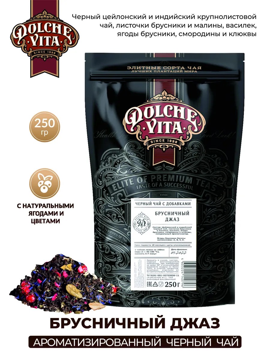 Dolche Vita Чай листовой черный с брусникой для заваривания, 250 г