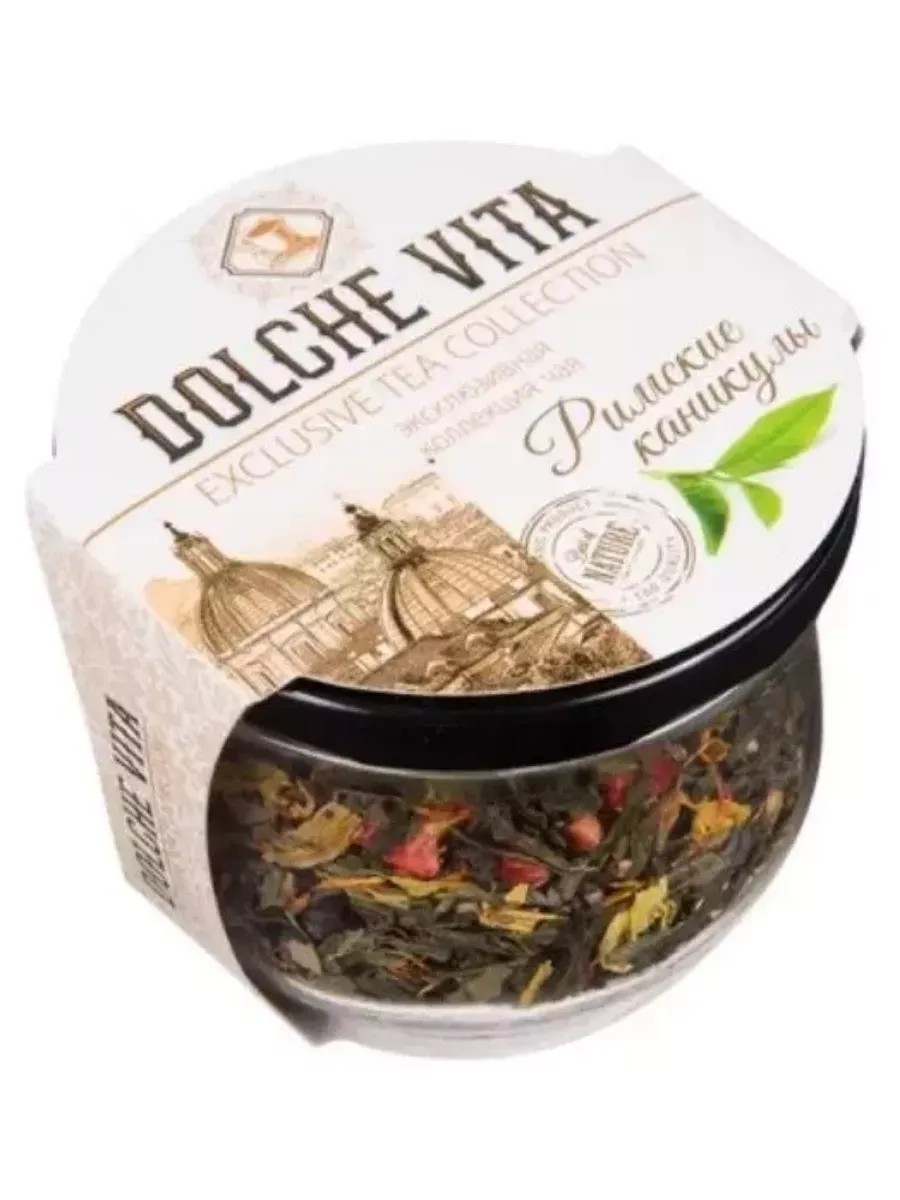 Dolche vita Чай зеленый с добавками Стекло Римские каникулы 50 гр, комплект 1 шт.