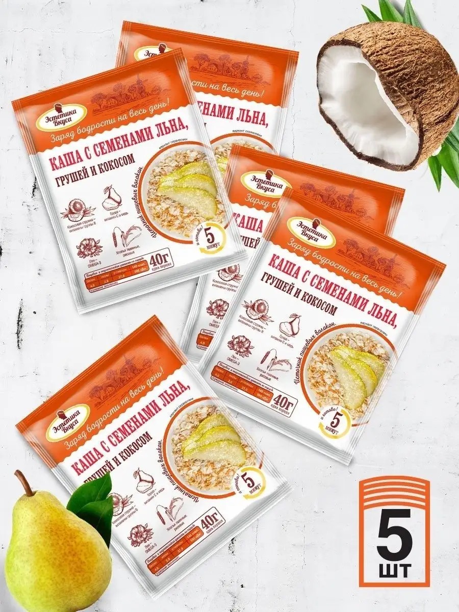Каша мультизлаковая с семенами льна, грушей и кокосом 5 шт по 40г