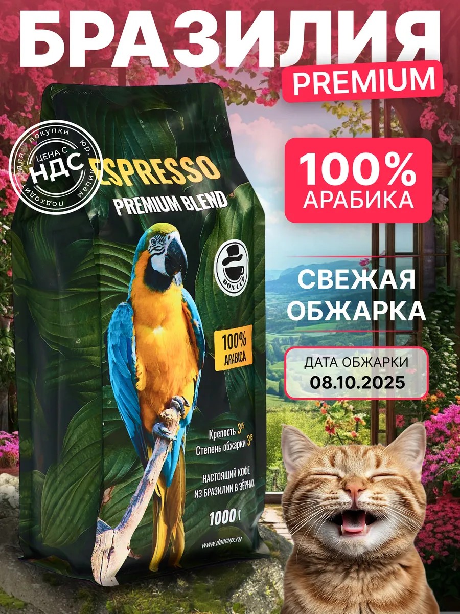 DON CUP Кофе в зернах 1 кг Бразилия Премиум Бленд