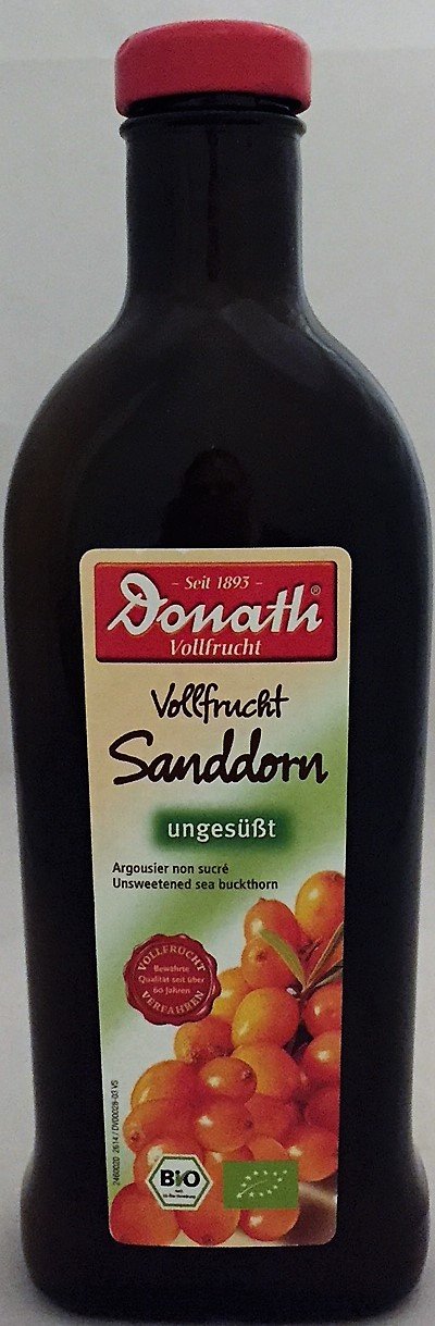 Donath Donath Organic Unsweetened Whole Fruit Sea Buckthorn 2 x 500ml (Pack of 2)