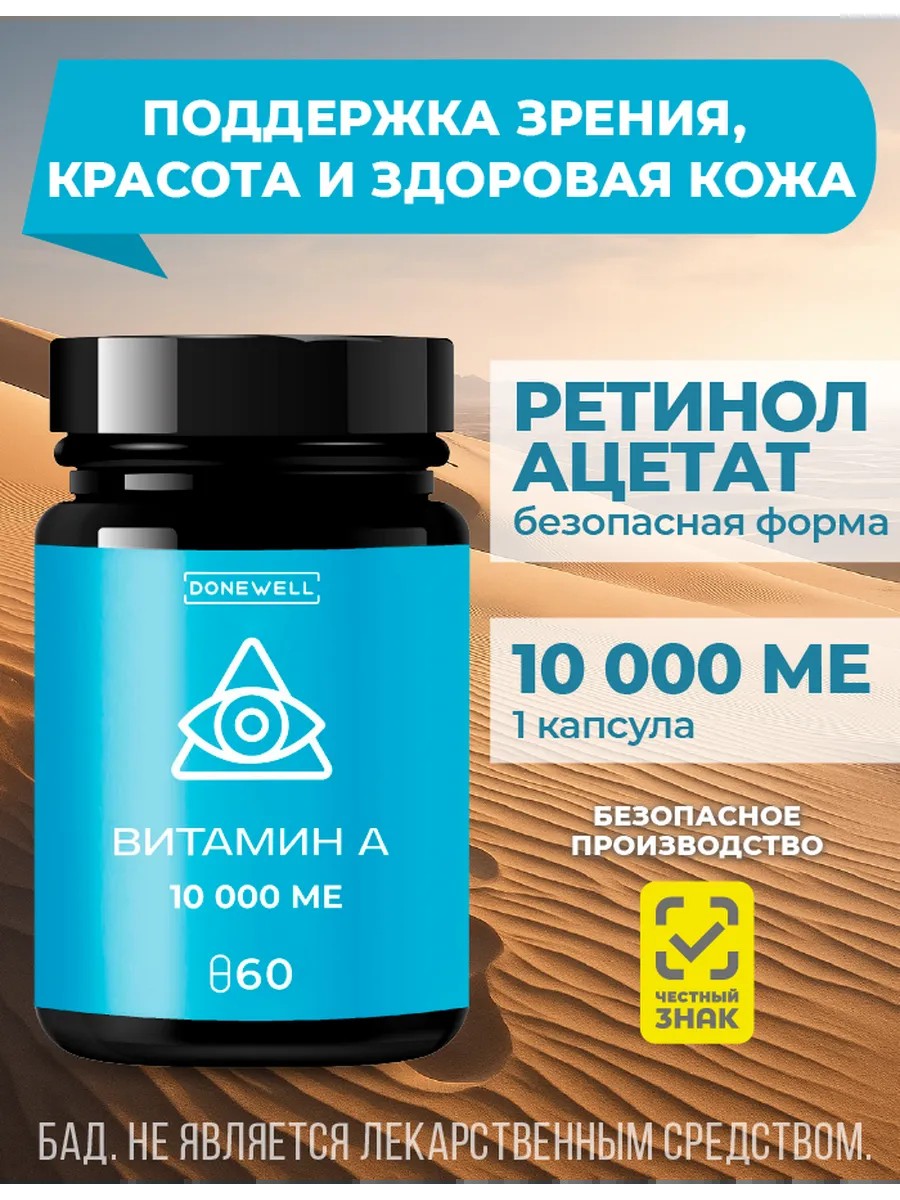 Витамин А 10 000 МЕ Donewell (Welldone) - мощная поддержка зрения, кожи и иммунитета.