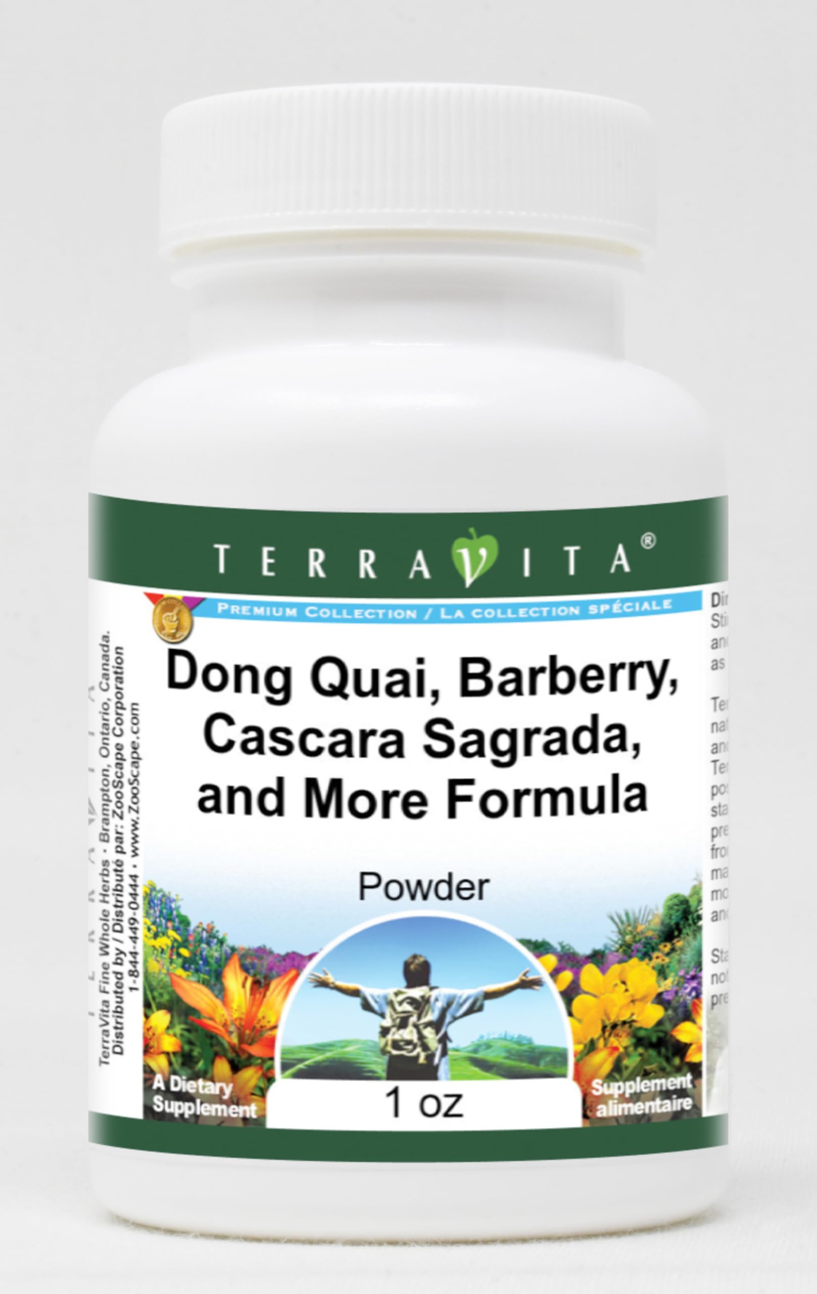Convenient Powder format. Size: 1 oz. Manufacturer: TerraVita. No fillers. Dong Quai, Barberry, Cascara Sagrada, and More Formula Powder (1 oz, ZIN: 512538).