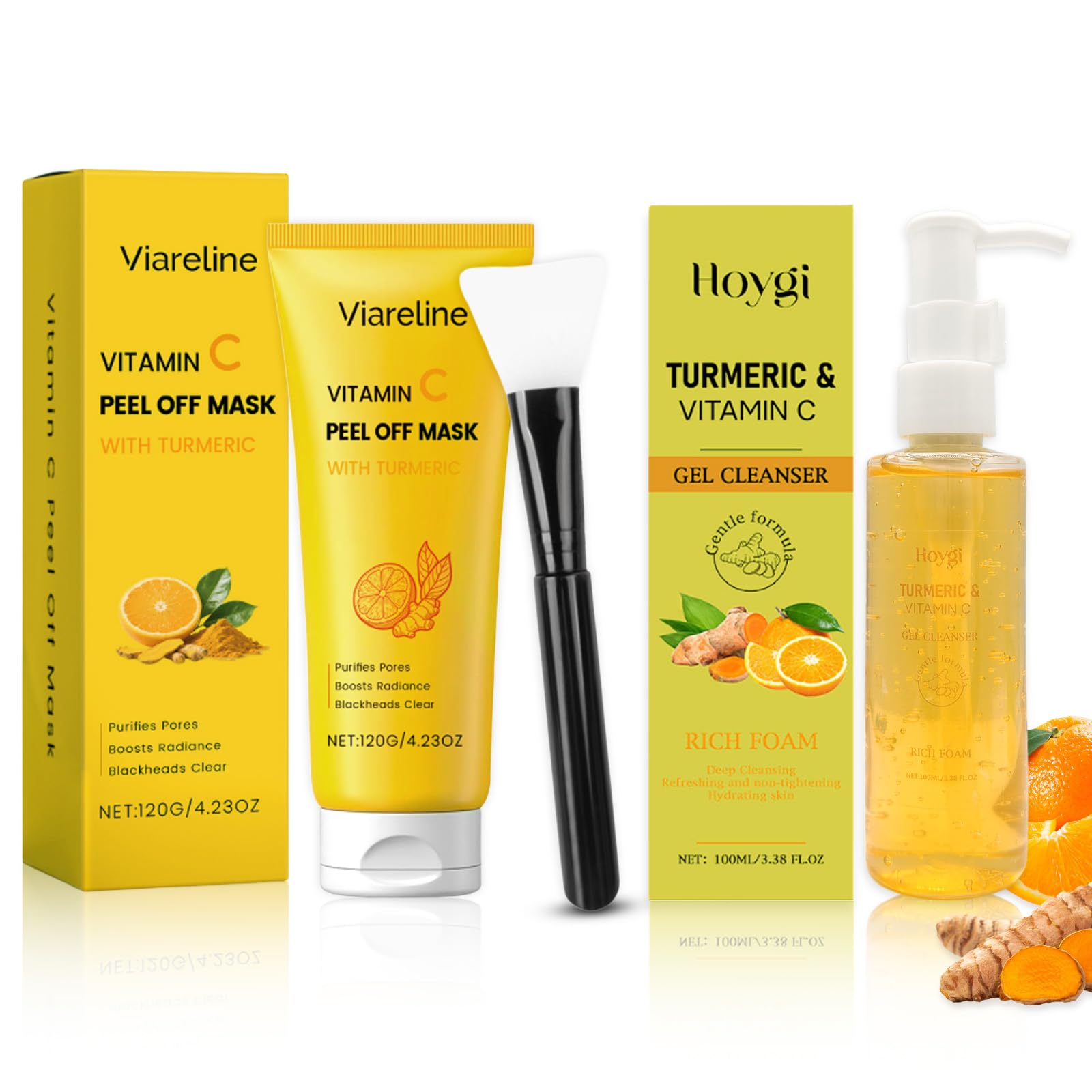 You will receive a 100ml Turmeric Cleansing Milk and a 120g Lettuce Mask, accompanied by a soft silicone brush for easy application. Our set simplifies your cleansing routine and helps improve blackheads, pimples, blemishes, fine lines, clogged pores and oil-water imbalance, leaving your skin cleaner, healthier and more radiant. SAFETY WARNING noFirming skin, suitable for all skin types: The peel-off mask promotes skin elasticity and reduces fine lines. This balanced formula is suitable for dry, oily, sensitive and combination skin. It hydrates the skin, regulates sebum production and streamlines your entire skin care routine. Fights impurities and soothes the skin: Turmeric is known for its anti-inflammatory properties. It reduces redness and helps repair irritated skin. The cleanser and mask work together to target existing blemishes while also acting preventatively to minimize new blemishes. Deep cleansing and refinement of the pores: The cleanser removes excess sebum from the pores daily, while the vitamin C exfoliating mask removes dead skin cells, impurities and blackheads. Regular use refines pores for smoother, fresher-looking skin. A radiant and even complexion: The combination of antioxidant vitamin C and soothing turmeric helps reduce dark spots, sun damage and a dull complexion. These active ingredients promote an even, radiant complexion by revitalizing the skin and protecting it from free radical damage. Gentle yet effective cleansing: Our Vitamin C Turmeric Cleanser effectively removes impurities, makeup and excess sebum without irritating or drying out the skin. This formula helps maintain the skin's natural moisture barrier, leaving it feeling soft and balanced after use and never tight.Gezichtsmasker met Kurkuma en Vitamine C Set, Vitamine C Peel-Off Masker Kurkuma Gezichtsreiniger,Reinigingsschuim voor een Stralende Teint, Tegen Donkere Vlekken,Tegen Acne U ontvangt een 100 ml Turmeric Cleansing Milk en een 120 g Sla Mask, vergezeld van een zachte siliconenborstel voor gemakkelijk aanbrengen. Onze set vereenvoudigt uw reinigingsroutine en helpt mee-eters, puistjes, oneffenheden, fijne lijntjes, verstopte poriën en een verstoorde olie-waterbalans te verbeteren, waardoor uw huid schoner, gezonder en stralender wordt. VEILIGHEIDSWAARSCHUWING noVerstevigende huid, geschikt voor alle huidtypes: Het peel-off masker bevordert de elasticiteit van de huid en vermindert fijne lijntjes. Deze uitgebalanceerde formule is geschikt voor de droge, vette, gevoelige en gemengde huid. Het hydrateert de huid, reguleert de talgproductie en stroomlijnt uw hele huidverzorgingsroutine. Bestrijdt onzuiverheden en kalmeert de huid: Kurkuma staat bekend om zijn ontstekingsremmende eigenschappen. Het vermindert roodheid en helpt de geïrriteerde huid te herstellen. De reiniger en het masker werken samen om bestaande puistjes aan te pakken en tegelijkertijd preventief te werken om nieuwe onzuiverheden te minimaliseren. Diepe reiniging en verfijning van de poriën: De reiniger verwijdert dagelijks overtollig talg uit de poriën, terwijl het vitamine C-exfoliërende masker dode huidcellen, onzuiverheden en mee-eters verwijdert. Regelmatig gebruik verfijnt de poriën voor een gladdere, frisser ogende huid. Een stralende en egale teint: De combinatie van antioxidant vitamine C en kalmerende kurkuma helpt donkere vlekken, schade door de zon en een doffe teint te verminderen. Deze actieve ingrediënten bevorderen een egale, stralende teint door de huid te revitaliseren en te beschermen tegen schade door vrije radicalen. Zachte maar effectieve reiniging: onze Vitamin C Turmeric Cleanser verwijdert effectief onzuiverheden, make-up en overtollig talg zonder de huid te irriteren of uit te drogen. Deze formule helpt de natuurlijke vochtbarrière van de huid in stand te houden, waardoor deze na gebruik zacht en in balans aanvoelt en nooit trekkerig wordt.