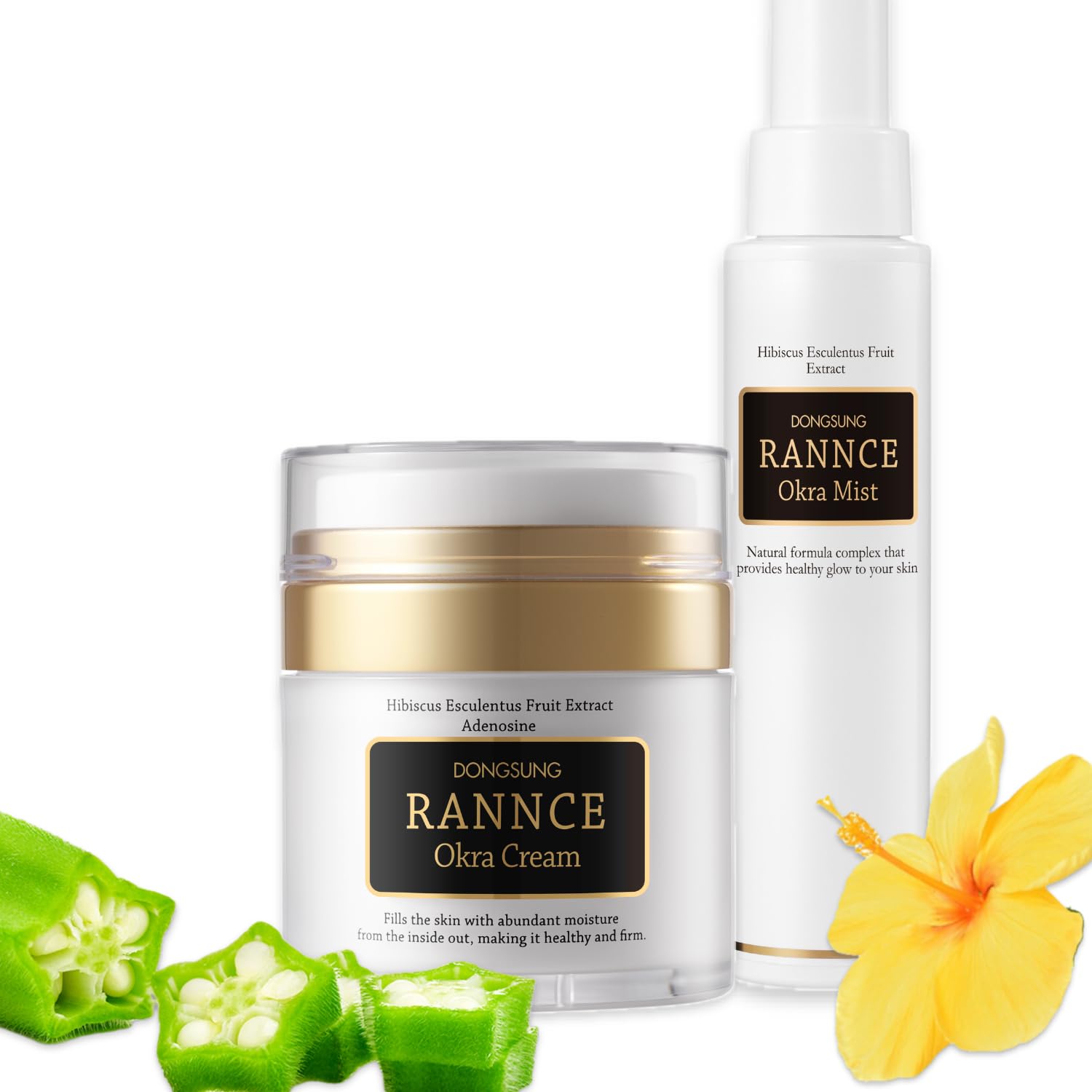 Dongsung Rannce Okra Cream & Mist Set Vegan Mucin Cream form Korea Anti Aging Face Cream with Functional Okra Extracts Wrinkle Improvement