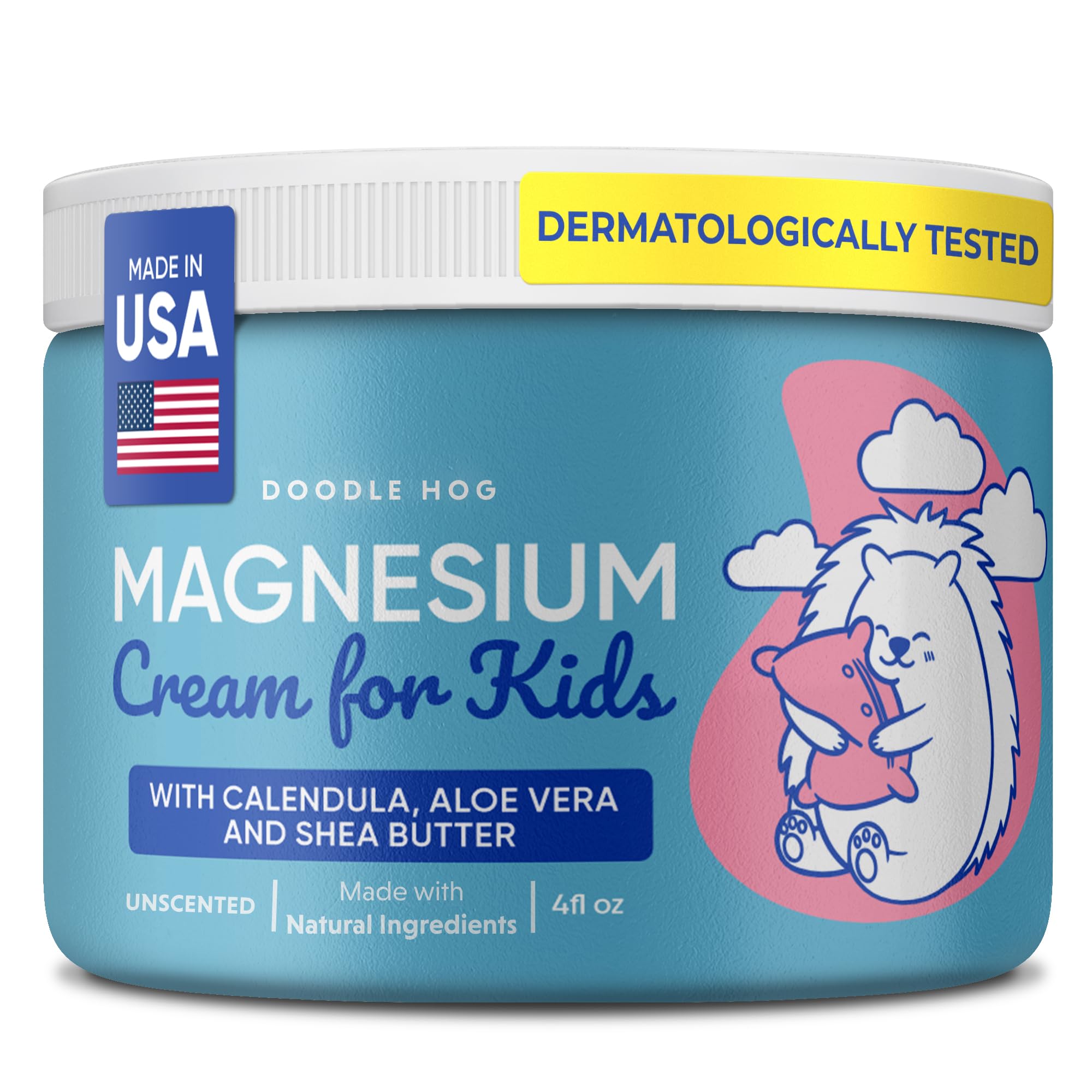 DOODLE HOG Magnesium Cream for Kids - Soothing Relief & Relaxation with Calendula Aloe Vera Shea Butter - Bedtime Magnesium Lotion for Kids Sleep - (4 oz Unscented)
