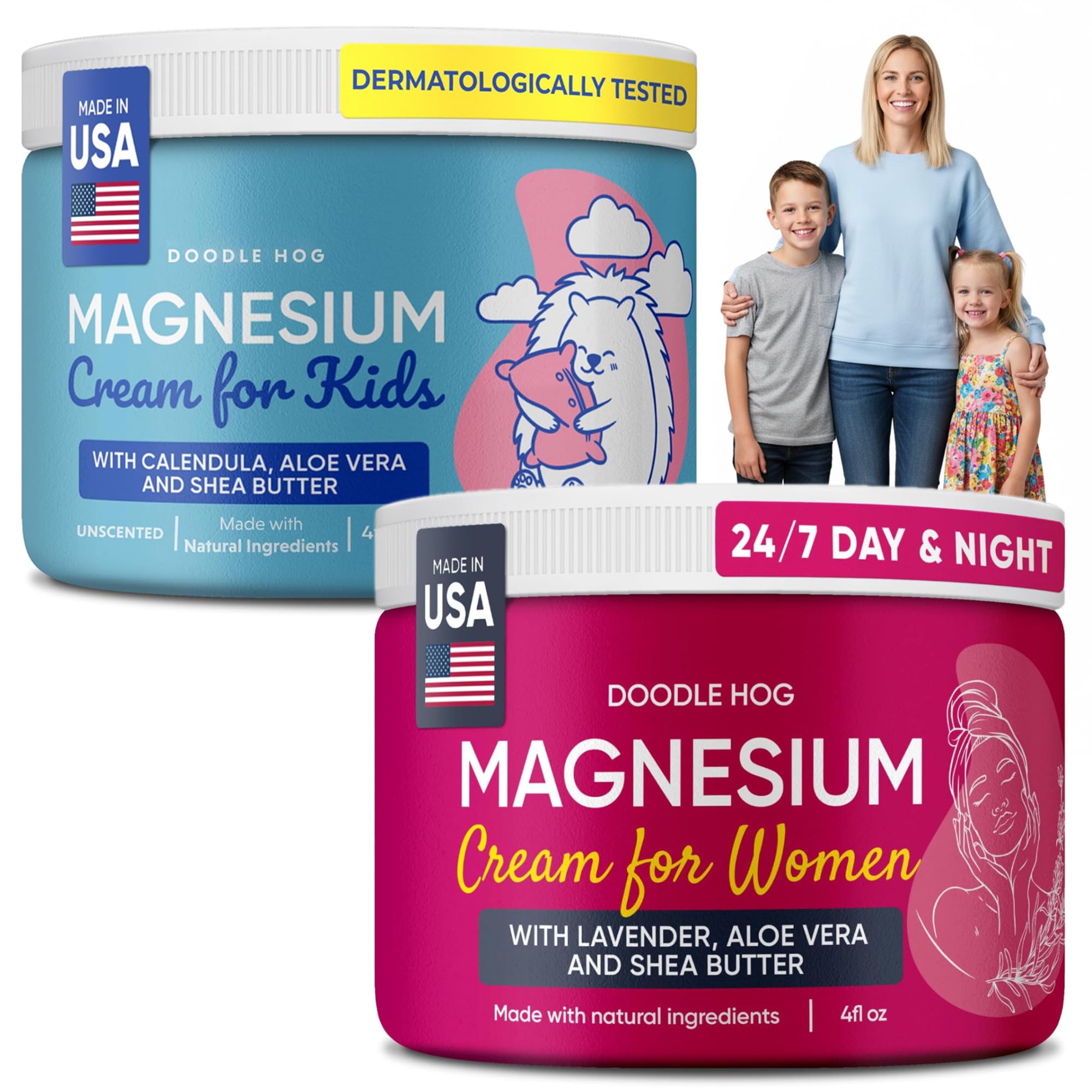 DOODLE HOG Mom & Child Magnesium Cream Bundle - Unscented & Lavender Lotion with Calendula Aloe Vera Shea Butter- Topical Magnesium Cream for Sleep - USA Made