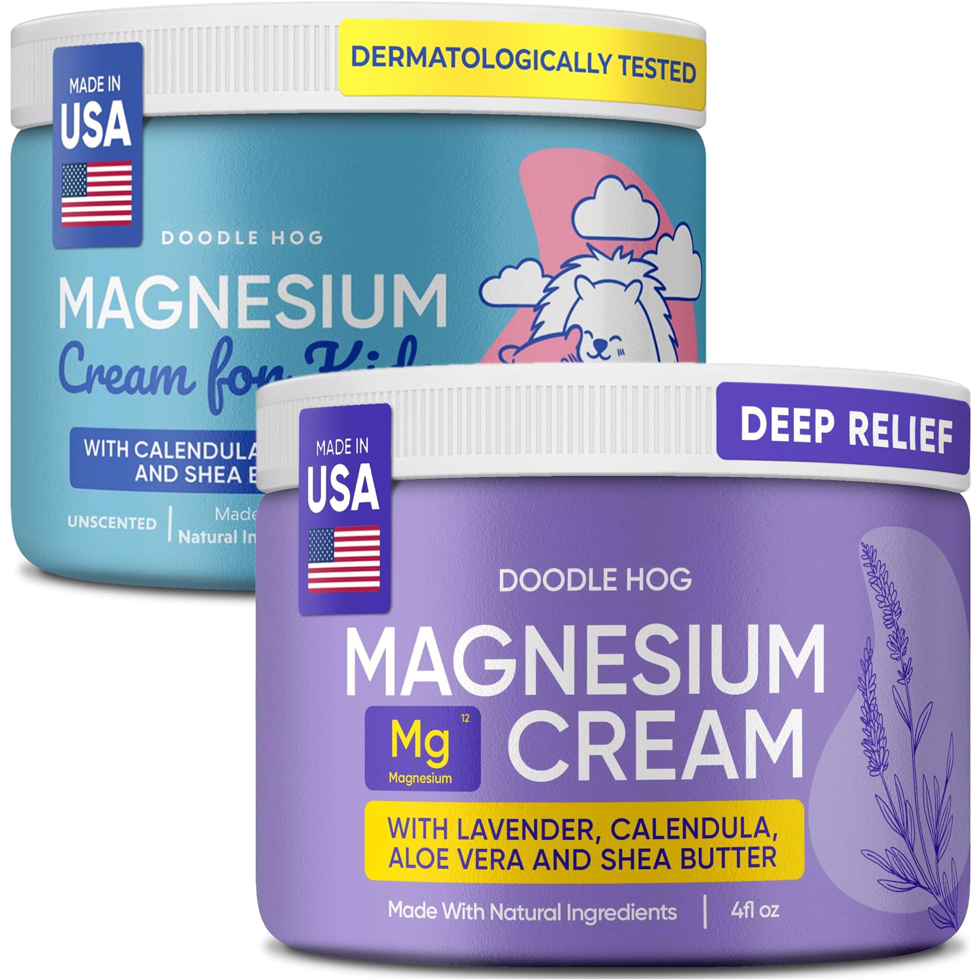 DOODLE HOG Parents & Child Magnesium Cream Bundle - Lavender & Unscented Lotion with Calendula Aloe Vera Shea Butter- Topical Magnesium Cream for Sleep - USA Made