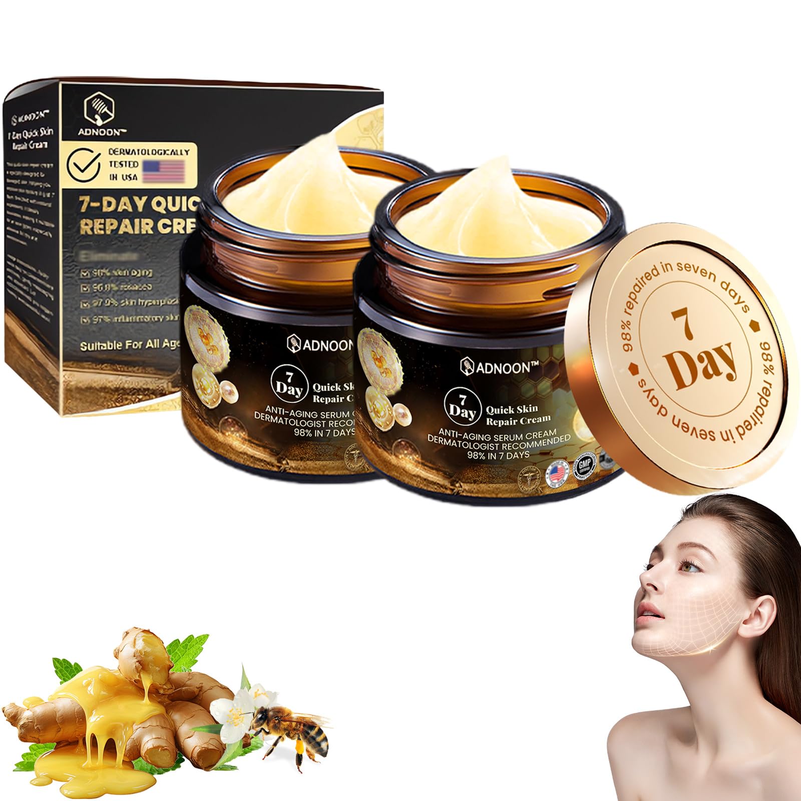 dooeka ADNOON 7-Day Multi-Effect All-in-One Skincare Cream Professional Bee Venom Skincare Cream All-in-One Skincare Cream Fine Line and Wrinkle Correction Cream for All Skin Types (2 Bottle)