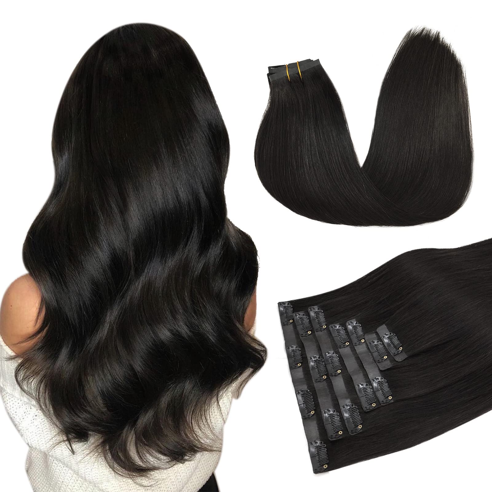 [We offer a variety of popular colors]- including solid and balayage that can fuse perfectly with your own hair.Due to different monitors and lighting conditions, there may be difference in colors.We hope you understand it.If you hesitate to choose a color, we also offer color comparison services.[Install 5-10 minutes-EVERYONE, quickly create a complete hairstyle look at any time]-Seamless clip in hair extensions is a simple and fast tool for adding volume and length.It only takes 5-10 minutes to tighten and remove 3-5 minutes.Compared to classic double shot clip hair, seamless clip in hair extensions is more suitable for people with thin hair.[7PCs clip in hair extensions with different width shot-add length and volume that you need]-our invisible clip in hair extensions with 7 pieces per pack.Shot width: 8inch*1, 6inch*2, 4inch*2, 2inch*2, weight: 110g, length: 14-22inch.For thick hair: Add 1-2 packs weight, add 2-3 packs length.For thin hair: 1-2 packs for more length and 2-3 packs for more weight.[7 layers of soft PU strips to keep the hair, no spilling, no stiff, no pleated blind, PU width narrow outside, far inside, invisible]-Our seamless clip in hair extensions uses 7-layer PU adhesive technology thatVery light and no hair loss.Soft PU shot is less susceptible to the wrinkle, and transparent glue is invisible.[New seamless silicone wages for ultimate invisible lighter, 9a grade clip human hair can be styled]-New clip-ins is updated based on classic shot clip-ins, all hair is fixed by PU shot, better adjusted to the scalp, seamless and light.100% remy hair, soft and thick, no drying, no knots.Can be style and color, control the temperature at 200 ?.Our hair extensions last 3-4 months with good care.[Wir Bieten Eine Vielzahl von Beliebten Farben]-- Einschließlich Solide und Balayage, die perfekt mit Ihrem eigenen Haar verschmelzen können. Aufgrund unterschiedlicher Monitore und Lichtverhältnisse kann es jedoch zu Farbunterschieden kommen. Wir hoffen, Sie verstehen es. Wenn Sie zögern, eine Farbe zu wählen, bieten wir auch Farbabgleichsdienste an. [5-10 Minuten zu Installieren -Einfach, Schnell Erstellen Sie eine Vollständige Frisur Look Jederzeit ]-- Nahtlose Clip in Haarverlängerungen ist ein einfaches und schnelles Werkzeug für das Hinzufügen von Volumen und Länge. Es dauert nur 5-10 Minuten zum Anziehen und 3-5 Minuten zum Entfernen. Im Vergleich zu klassischem doppeltem Schussclip Haar ist nahtloser Clip in Haarverlängerungen für Menschen mit dünnem Haar besser geeignet. [7pcs Clip in Haarverlängerungen Mit Unterschiedlicher Breite Schuss --Fügt Länge und Volumen Hinzu, die Sie Benötigen]-- Unser unsichtbarer Clip in Haarverlängerungen mit 7-Stücken pro Packung. Schussbreite: 8inch*1, 6inch*2, 4inch*2, 2inch*2, Gewicht: 110g, Länge: 14-22inch. Für dickes Haar: 1-2 Packungen hinzufügen Gewicht, 2-3 Packungen hinzufügen Länge. Für dünnes Haar: 1-2 Packungen für mehr Länge und 2-3 Packungen für mehr Gewicht. [7 Schichten Weiche PU-Streifen, um das Haar zu Halten, Kein Verschütten, Kein Steif, Kein Plissee, PU-Breite Schmal Außen, Weit Innen, Unsichtbar]-- Unser nahtloser Clip in Haarverlängerungen verwendet 7-Schicht PU-Klebeklebetechnologie, die sehr leicht und kein Haarausfall ist. Weicher PU-Schuss ist weniger anfällig für die Falte, und transparenter Kleber ist unsichtbar. [Neue Nahtlose Silikon-Wefts Für Ultimative Unsichtbare Feuerzeug, 9A Grade Clip Menschliches Haar Kann Gestylt Werden ]-- Neue Clip-ins wird auf der Grundlage klassischer Schussclip-ins aktualisiert, alle Haare werden durch PU-Schussfäße fixiert, besser an die Kopfhaut angepasst, nahtlos und leicht. 100% remy Haar, weich und dick, kein Trocknen, keine Knoten. Kann Stil und Farbe sein, steuern Sie die Temperatur bei 200 ?. Unsere Haarverlängerungen dauern 3-4 Monate mit guter Pflege.DOORES Clip in Extensions Echthaar, Natürliches Schwarz 50cm 20 Zoll 7 Stück 110g Remy Menschlich Clips in Haarverlängerung Echthaar Extensions Seamless Natürliche Echthaar Extensions Nahtlose-50cm-110g 1B Natürliches Schwarz-Nahtlose