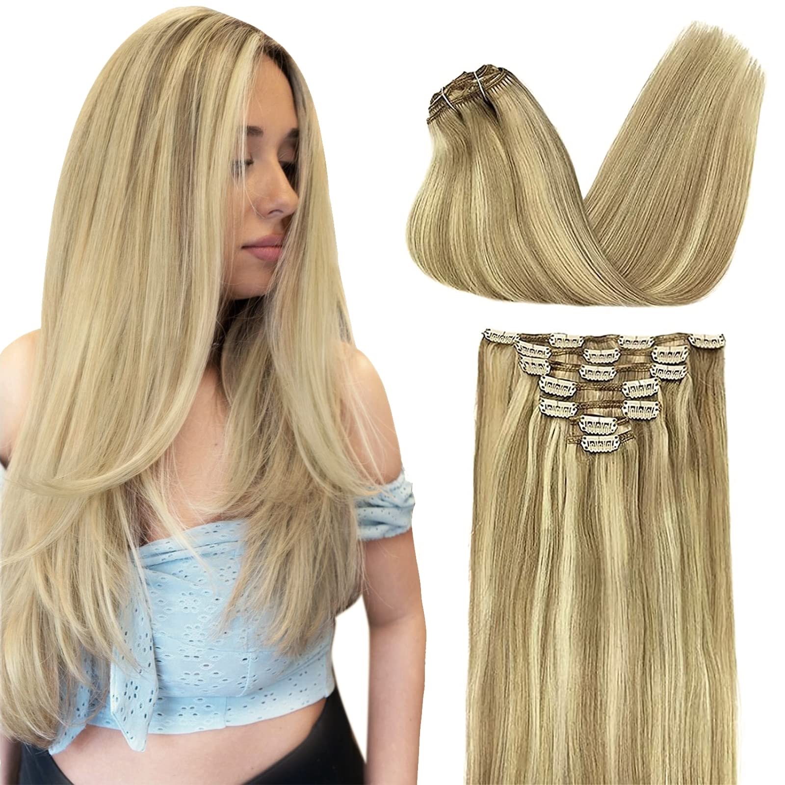 [Warm care tips] Wash your extensions with moisturizing hair care products.Then gently comb the extensions, which can prevent the hair from falling out.Give your extensions carefully in warm water and apply a little conditioner once a week.Let it take effect for about 20 minutes, rinse and of course dry with a hair dryer.With the right care, these hair extensions can take 2-3 months.[To choose many popular ombre or Balayage colors] Doores Clip in hair extensions has more than 20 popular colors, brings you an extremely comfortable color experience.We compare and calibrate it on different devices and try our best to reduce chromatic aberration.If you are not satisfied with the color after receiving the goods, please contact us, we will meet your needs and help you to solve the problem.[U-shape metal clips to carry cracks too reduced-stainless steel metal clips with a unique U-shaped design are solid so that it is comfortable to wear.The back has a soft rubber silicone that effectively reduces pulling on the hair and protects your scalp.You can easily wear or lose the hair extensions within five minutes.Even if you wear a hair extension for the first time, you can handle it without any problems.[Soft and comfortable 120g clip in hair extensions with exquisite handmade hair shot] Doores 7 pieces of 120g clip in hair extensions, 105g net weight without clips.The hair is super soft, the tips are thick and not split so that you can treat yourself silky smoothly.Handmade two -layer hair shot ensures that the hair does not fall off.No matter in your daily work, dating or party, our hair extensions help you add more charm!.[100% high quality real human hair extension can be freely styled] real human hair, made by 9a quality real human hair and excellent technology.Continuously absorb the needs of customers and finally reach high -quality doors real hair extensions.It can be washed, colored and styled, please make sure that the temperature is regulated below 430 ° F when heated.[Warme Pflege Tipps] Waschen Sie Ihre Extensions bitte mit feuchtigkeitsspendenden Haarpflegeprodukten. Dann kämmen Sie die Extensions sanft, was verhindern kann, dass das Haar herausfällt. Gib deine Extensions vorsichtig in warmes Wasser und trage einmal pro Woche ein wenig Conditioner auf. Etwa 20-Minuten einwirken lassen, abspülen und natürlich mit einem Haartrockner trocknen. Mit der richtigen Pflege können diese Haarverlängerungen 2-3 Monate dauern. [Viele Beliebte Ombre- Oder Balayage-Farben zu Wählen] DOORES Clip in Haarverlängerungen hat mehr als 20 beliebte Farben, bringt Ihnen ein extrem komfortables Farberlebnis. Wir vergleichen und kalibrieren es auf verschiedenen Geräten und versuchen unser Bestes, um die chromatische Aberration zu reduzieren. Wenn Sie nach Erhalt der Waren mit der Farbe nicht zufrieden sind, treten Sie bitte mit uns in Verbindung, wir werden Ihre Bedürfnisse erfüllen und Ihnen helfen, das Problem zu lösen. [U-Form Metallclips, um Risse zu Reduzieren-Schnell zu Tragen] Edelstahl-Metallclips mit einzigartigem U-förmigem Design sind fest, so dass es angenehm zu tragen ist. Die Rückseite hat ein weiches Gummi-Silikon, das effektiv das Ziehen an den Haaren reduziert und Ihre Kopfhaut schützt. Sie können die Haarverlängerungen innerhalb von fünf Minuten leicht tragen oder abnehmen. Selbst wenn du zum ersten Mal eine Haarverlängerung trägst, kannst du damit problemlos umgehen. [Weiche und Bequeme 120g Clip in Haarverlängerungen Mit Exquisiten Handgefertigten Haarschuss] DOORES 7 Stücke von 120g Clip in Haarverlängerungen, 105g Nettogewicht ohne Clips. Das Haar ist super weich, die Spitzen sind dick und nicht gespalten, so dass Sie sich seidig glatt gönnen können. Handgefertigter zweilagiger Haarschuss sorgt dafür, dass das Haar nicht abfällt. Egal in Ihrer täglichen Arbeit, Dating oder Party, unsere Haarverlängerungen helfen Ihnen, mehr Charme hinzuzufügen!. [100% Hochwertiges Echtes Menschliches Haar Extensions-Kann Frei Gestylt Werden] Echtes menschliches Haar, hergestellt von 9A Qualität echtes menschliches Haar und hervorragende Technologie. Absorbieren Sie kontinuierlich die Bedürfnisse der Kunden und erreichen Sie schließlich hochwertige DOORES Echthaarverlängerungen. Es kann gewaschen, gefärbt und gestylt werden, bitte stellen Sie sicher, dass die Temperatur unter 430°F beim Erhitzen geregelt wird.DOORES Haarverlängerungen Echthaar, Hellblond Highlights Goldblond 50cm 20 Zoll 7 Stück 120g Remy Clip in Haarverlängerung Gerade Echthaar Extensions Clip Natürliche Echthaar Extensions 50cm-120g #16/22 Hellblond Highlights Goldblond