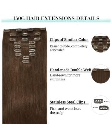 [Simply wearing efficiently in just 5 minutes you save your valuable time]- clip in hair extensions are designed for easy use and distance, the clips are very flexible, and can increase your length and thickness at any time and anywhere in just a few minutes.With the right care, these hair extensions can take 2-3 months.Please make sure that you use the method in the instructions in the box to clean it correctly.[20 +2 stable clip handmade Hair WEFT-Durable not to fall]-stainless steel clips are sewn stable, covered with a layer of soft rubber, similar to your hair color.Really invisible and pleasant to wear, protects your scalp and hair to ensure that your hair can of course be styled.Unique well -made handmade shot threads, sewn closely.Not easy to fall, more durable, can prevent it from falling off and tangled.[More popular Balayage, Ombre, Pure Colors to Choose at Will]- the most popular different colors available, give you more options.The actual color can have slight differences due to monitors or light, if you have difficulty choosing, feel free to get in touch with us.Since your own hair covers the extension after wearing, the mixed effect will not be obvious.[The raw materials are selected by hand without contamination] - hair is softer and smoother and more pleasant to wear.All hair extensions have strict quality control and color calibration to ensure that all of the products survived are satisfied.Please check the temperature below 200 ° C when styling.[150g upgrade hair extensions weight super thick for thin hair]- 9 pieces 150g with 20 clips per set.132g net weight without clips, 150g with clips.Based on the original 120g, the updated version of the clip added two pieces 2-clip of shot in hair extensions.Don't worry that your hair is too thin and have to buy two packs, a package 150g hair extensions can meet your needs.[Einfach in nur 5 Minuten zu Tragen Effizient Sparen Sie Ihre Wertvolle Zeit ]-- Clip in Haarverlängerungen sind für einfache Anwendung und Entfernung konzipiert, die Clips sind sehr flexibel, und können Ihre Länge und Dicke in nur wenigen Minuten jederzeit und überall erhöhen. Mit der richtigen Pflege können diese Haarverlängerungen 2-3 Monate dauern. Bitte achten Sie darauf, dass Sie die Methode in der Anleitung in der Box verwenden, um sie richtig zu reinigen. [20 +2 Stabile Clip-Handmade Hair Weft-Durable Nichtleicht zu Fallen]-- Edelstahlclips sind stabil genäht, bedeckt mit einer Schicht von weichem Gummi, ähnlich Ihrer Haarfarbe. Wirklich unsichtbar und angenehm zu tragen, schützt Ihre Kopfhaut und Haare, um sicherzustellen, dass Ihr Haar natürlich gestylt werden kann. Einzigartige gut gefertigte handgefertigte Schussfäden, eng zusammengenäht. Nicht einfach zu fallen, haltbarer, kann verhindern, dass sie abfällt und sich verheddert. [Beliebtere Balayage, Ombre, Pure Colors to Choose at Will]-- Die beliebtesten verschiedenen Farben verfügbar, geben Ihnen mehr Optionen. Die tatsächliche Farbe kann leichte Unterschiede aufgrund von Monitoren oder Licht haben, wenn Sie Schwierigkeiten bei der Auswahl haben, fühlen Sie sich frei, mit uns in Kontakt zu treten. Da Ihre eigenen Haare die Verlängerung nach dem Tragen abdecken, wird der gemischte Effekt nicht offensichtlich sein. [Die Rohstoffe Werden Von Hand Ohne Verunreinigungen Ausgewählt] -- Haar weicher und glatter und angenehmer zu tragen ist. Alle Haarverlängerungen haben eine strenge Qualitätskontrolle und Farbkalibrierung, um sicherzustellen, dass alle erhaltenen Produkte zufrieden sind. Bitte kontrollieren Sie beim Styling die Temperatur unter 200°C. [150g Upgrade Haarverlängerungen Gewicht Super Dick Für Dünnes Haar]-- 9 Stück 150g mit 20 Clips pro Set. 132g Nettogewicht ohne Clips, 150g mit Clips. Auf der Basis des originalen 120g hat die aktualisierte Version des Clips in Haarverlängerungen zwei Stücke 2-Clip Schuss hinzugefügt. Machen Sie sich keine Sorgen, dass Ihr Haar zu dünn ist und müssen zwei Packungen kaufen, ein Paket 150g Haarverlängerungen kann Ihre Bedürfnisse erfüllen.DOORES Echthaar Extensions Clip, Schokoladenbraun 35cm 14 Zoll 9 Stück 150g Remy Menschlich Clips in Haarverlängerung Remy Clip in Haarverlängerung Natürliche Echthaar Extensions Dicke Haare 35cm-150g #4 Schokoladenbraun