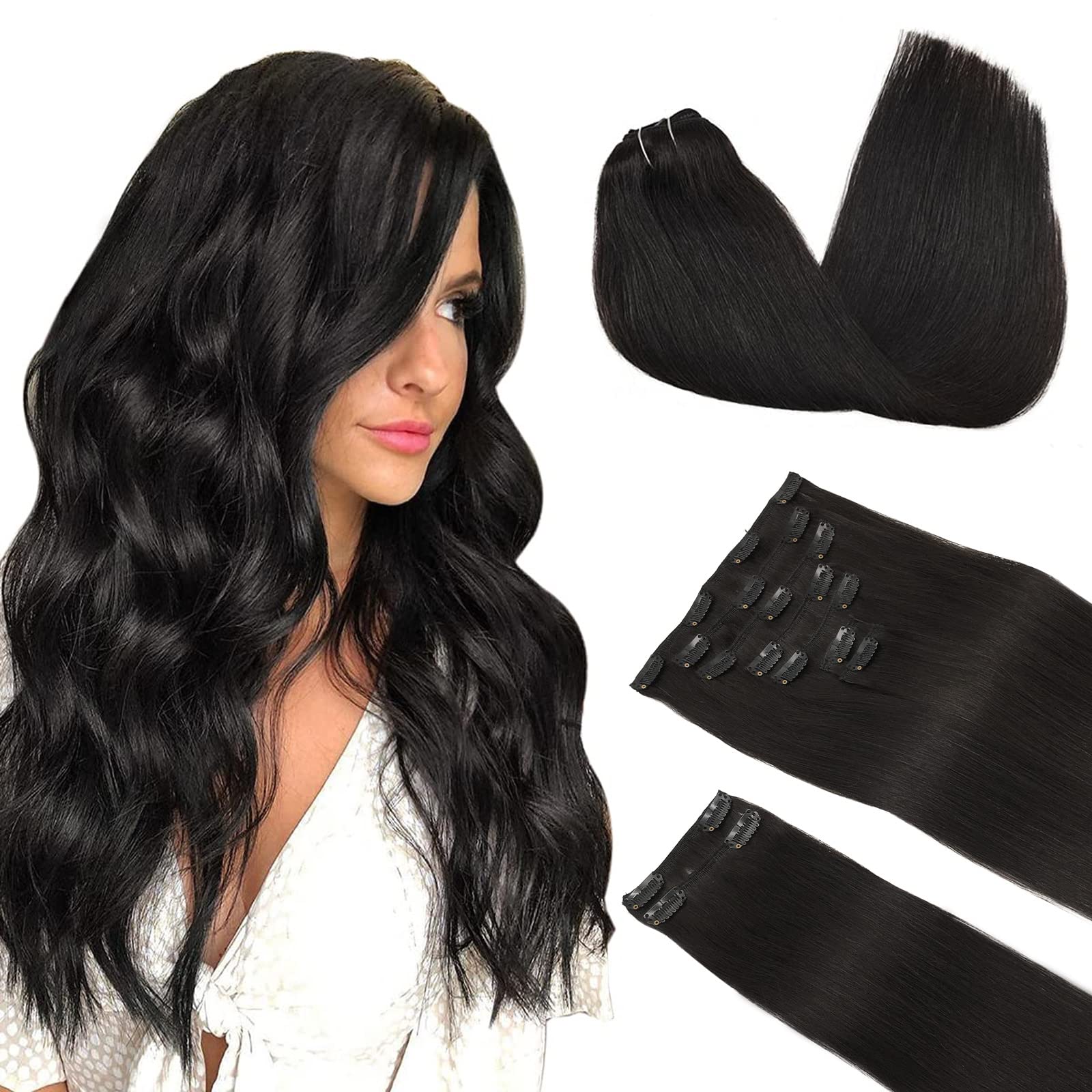 [Simply wearing efficiently in just 5 minutes you save your valuable time]- clip in hair extensions are designed for easy use and distance, the clips are very flexible, and can increase your length and thickness at any time and anywhere in just a few minutes.With the right care, these hair extensions can take 2-3 months.Please make sure that you use the method in the instructions in the box to clean it correctly.[20 +2 stable clip handmade Hair WEFT-Durable not to fall]-stainless steel clips are sewn stable, covered with a layer of soft rubber, similar to your hair color.Really invisible and pleasant to wear, protects your scalp and hair to ensure that your hair can of course be styled.Unique well -made handmade shot threads, sewn closely.Not easy to fall, more durable, can prevent it from falling off and tangled.[More popular Balayage, Ombre, Pure Colors to Choose at Will]- the most popular different colors available, give you more options.The actual color can have slight differences due to monitors or light, if you have difficulty choosing, you will feel free to get in touch with us.Since your own hair covers the extension after wearing, the mixed effect will not be obvious.[The raw materials are selected by hand without contamination] - hair is softer and smoother and more pleasant to wear.All hair extensions have strict quality control and color calibration to ensure that all of the products survived are satisfied.Please check the temperature below 200 ° C when styling.[150g upgrade hair extensions weight super thick for thin hair]- 9 pieces 150g with 20 clips per set.132g net weight without clips, 150g with clips.Based on the original 120g, the updated version of the clip added two pieces 2-clip of shot in hair extensions.Don't worry that your hair is too thin and have to buy two packs, a package 150g hair extensions can meet your needs.[Einfach in nur 5 Minuten zu Tragen Effizient Sparen Sie Ihre Wertvolle Zeit ]-- Clip in Haarverlängerungen sind für einfache Anwendung und Entfernung konzipiert, die Clips sind sehr flexibel, und können Ihre Länge und Dicke in nur wenigen Minuten jederzeit und überall erhöhen. Mit der richtigen Pflege können diese Haarverlängerungen 2-3 Monate dauern. Bitte achten Sie darauf, dass Sie die Methode in der Anleitung in der Box verwenden, um sie richtig zu reinigen. [20 +2 Stabile Clip-Handmade Hair Weft-Durable Nichtleicht zu Fallen]-- Edelstahlclips sind stabil genäht, bedeckt mit einer Schicht von weichem Gummi, ähnlich Ihrer Haarfarbe. Wirklich unsichtbar und angenehm zu tragen, schützt Ihre Kopfhaut und Haare, um sicherzustellen, dass Ihr Haar natürlich gestylt werden kann. Einzigartige gut gefertigte handgefertigte Schussfäden, eng zusammengenäht. Nicht einfach zu fallen, haltbarer, kann verhindern, dass sie abfällt und sich verheddert. [Beliebtere Balayage, Ombre, Pure Colors to Choose at Will]-- Die beliebtesten verschiedenen Farben verfügbar, geben Ihnen mehr Optionen. Die tatsächliche Farbe kann leichte Unterschiede aufgrund von Monitoren oder Licht haben, wenn Sie Schwierigkeiten bei der Auswahl haben, fühlen Sie sich frei, mit uns in Kontakt zu treten. Da Ihre eigenen Haare die Verlängerung nach dem Tragen abdecken, wird der gemischte Effekt nicht offensichtlich sein. [Die Rohstoffe Werden Von Hand Ohne Verunreinigungen Ausgewählt] -- Haar weicher und glatter und angenehmer zu tragen ist. Alle Haarverlängerungen haben eine strenge Qualitätskontrolle und Farbkalibrierung, um sicherzustellen, dass alle erhaltenen Produkte zufrieden sind. Bitte kontrollieren Sie beim Styling die Temperatur unter 200°C. [150g Upgrade Haarverlängerungen Gewicht Super Dick Für Dünnes Haar]-- 9 Stück 150g mit 20 Clips pro Set. 132g Nettogewicht ohne Clips, 150g mit Clips. Auf der Basis des originalen 120g hat die aktualisierte Version des Clips in Haarverlängerungen zwei Stücke 2-Clip Schuss hinzugefügt. Machen Sie sich keine Sorgen, dass Ihr Haar zu dünn ist und müssen zwei Packungen kaufen, ein Paket 150g Haarverlängerungen kann Ihre Bedürfnisse erfüllen.DOORES Echthaar Extensions Clip, Natürliches Schwarz 40cm 16 Zoll 9 Stück 150g Remy Menschlich Clips in Haarverlängerung Natürliche Echthaar Extensions Gerade Dicke Haare 40cm-150g 1B Natürliches Schwarz