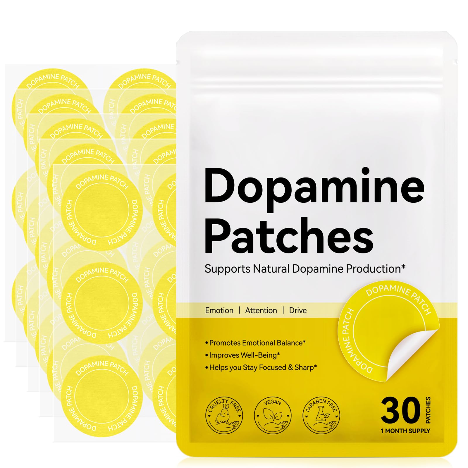 ✓ GREAT VALUE 30 PATCHES PER PACK ----- dopamine patches for women,A full month's supply in every box! Formulated for daily wear, these patches are designed for everyone to support your focus and well-being throughout the day—whether you're at work, at home, or at the gym. ? LONG-LASTING, STEADY RELEASE ----- Each patch delivers consistent support for up to 8 hours, helping stabilize mood and sharpen focus throughout your busiest days. Ideal for those seeking a convenient and reliable wellness boost. ✓ EFFORTLESS DISCREET APPLICATION ------ No pills, no powders—just place one patch on clean, dry skin and experience continuous support. Ultra-thin, breathable, and water-resistant, it's designed for all-day wear without interrupting your routine. POWERFUL PLANT-BASED FORMULA ----- Our vegan-friendly dopamine patches are infused with natural ingredients known to support cognitive function and emotional wellness. Free from common irritants and cruelty-free, they offer a clean, mindful approach to everyday self-care. DAILY MENTAL CLARITY MOOD SUPPORT ----- Kickstart your day with our easy-to-use dopamine patches, designed to naturally promote a positive mood and enhance mental clarity. Perfect for integrating into your daily wellness routine, these patches help you maintain emotional balance and stay focused—all day long.