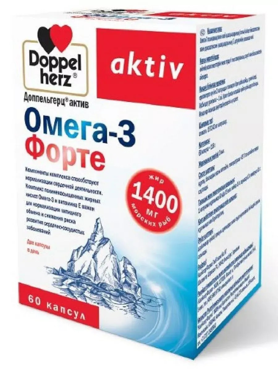 DOPPELHERZ ACTIVE OMEGA-3 FORTE N60 CAPS. A complex of Omega-3 polyunsaturated fatty acids and vitamin E is important for normalizing lipid metabolism and reducing the risk of cardiovascular disease. The components of the complex help normalize cardiac function.
