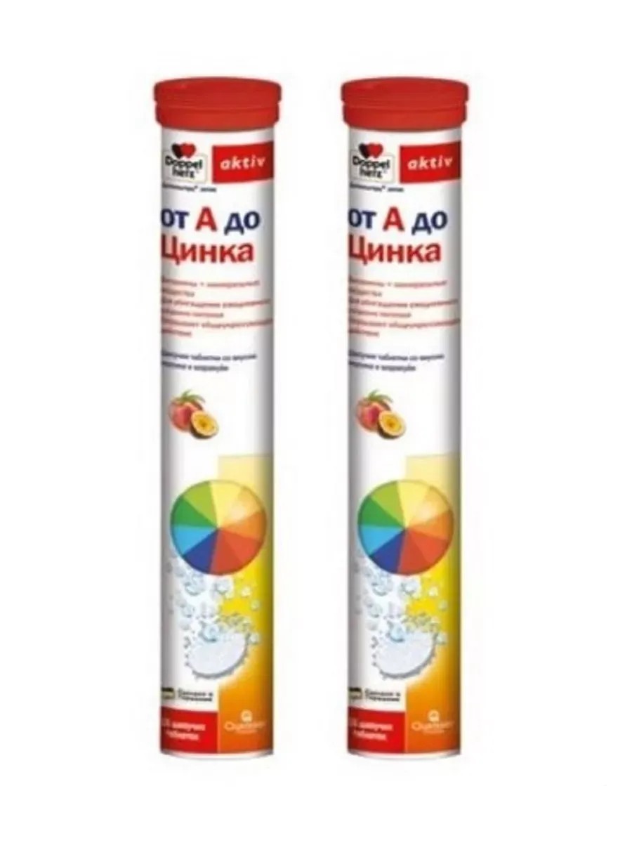 Doppelherz Active from A to Zinc is designed for active and business-minded people whose lives are associated with increased mental, physical and emotional stress, as well as for those who want to always remain alert and energetic. It includes 13 vital vitamins and 8 minerals that help increase the body's resistance to stress and adverse environmental factors. Doppelherz Active from A to Zinc is recommended for the following indications: Prevention and treatment of hypovitaminosis, avitaminosis and mineral deficiency; Insufficient or unbalanced nutrition; Decreased mental and physical performance, fatigue, impaired concentration; Prevention and treatment of chronic fatigue syndrome; To improve the functional activity of the cardiovascular and nervous systems; During the period of convalescence after illnesses, surgeries and radiation therapy; To improve immunity and resistance to adverse environmental factors, stressful situations. Daily dose (= 1 tablet): Component Quantity Calcium 200 mg Magnesium 100 mg Iodine 100 mcg Phosphorus 125 mg Vitamin C 200 mgVitamin E 12 mgNicotinamide (vitamin PP) 16 mgVitamin B5 6 mgVitamin B2 2.1 mgVitamin B6 2.1 mgVitamin B1 1.65 mgVitamin A 400 mcgFolic acid 400 mcgBiotin 75 mcgVitamin K 20 mcgVitamin D3 5 mcgVitamin B12 3.75 mcgZinc 5 mgSelenium 30 mcgChromium 12 mcgMolybdenum 12.5 mcgFood and energy value: 1 effervescent tablet contains: 10 kcal, 40 kJ, proteins 0 g, fats 0 g, carbohydrates 3.3 g.Instructions for patients with diabetes: 1 effervescent tablet contains 0.02 bread units.