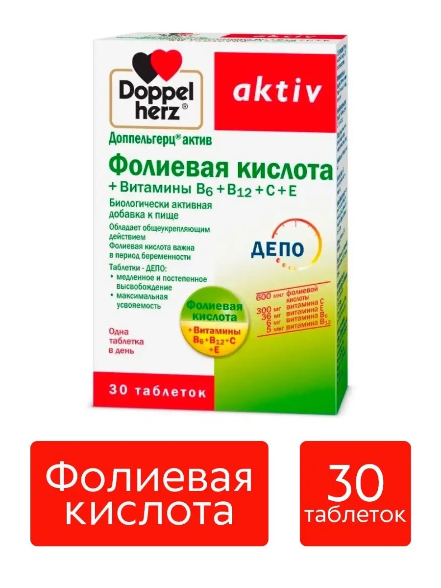 Доппельгерц Актив Фолиевая кислота + В6, В12, С, Е