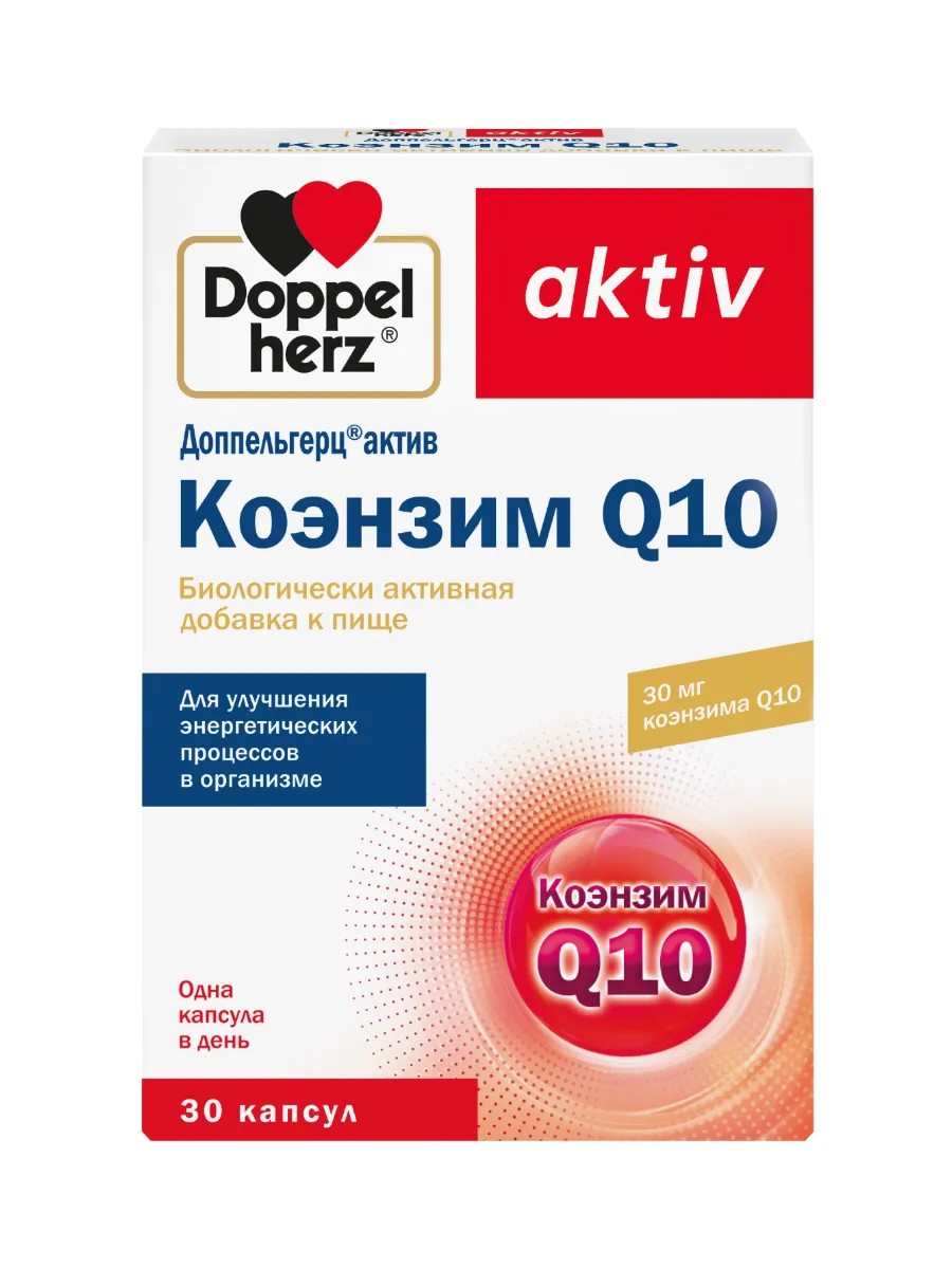 Doppelherz Active Coenzyme Q10 is a dietary supplement (DS) in capsule form designed to support the health of the immune system, heart, and blood vessels.