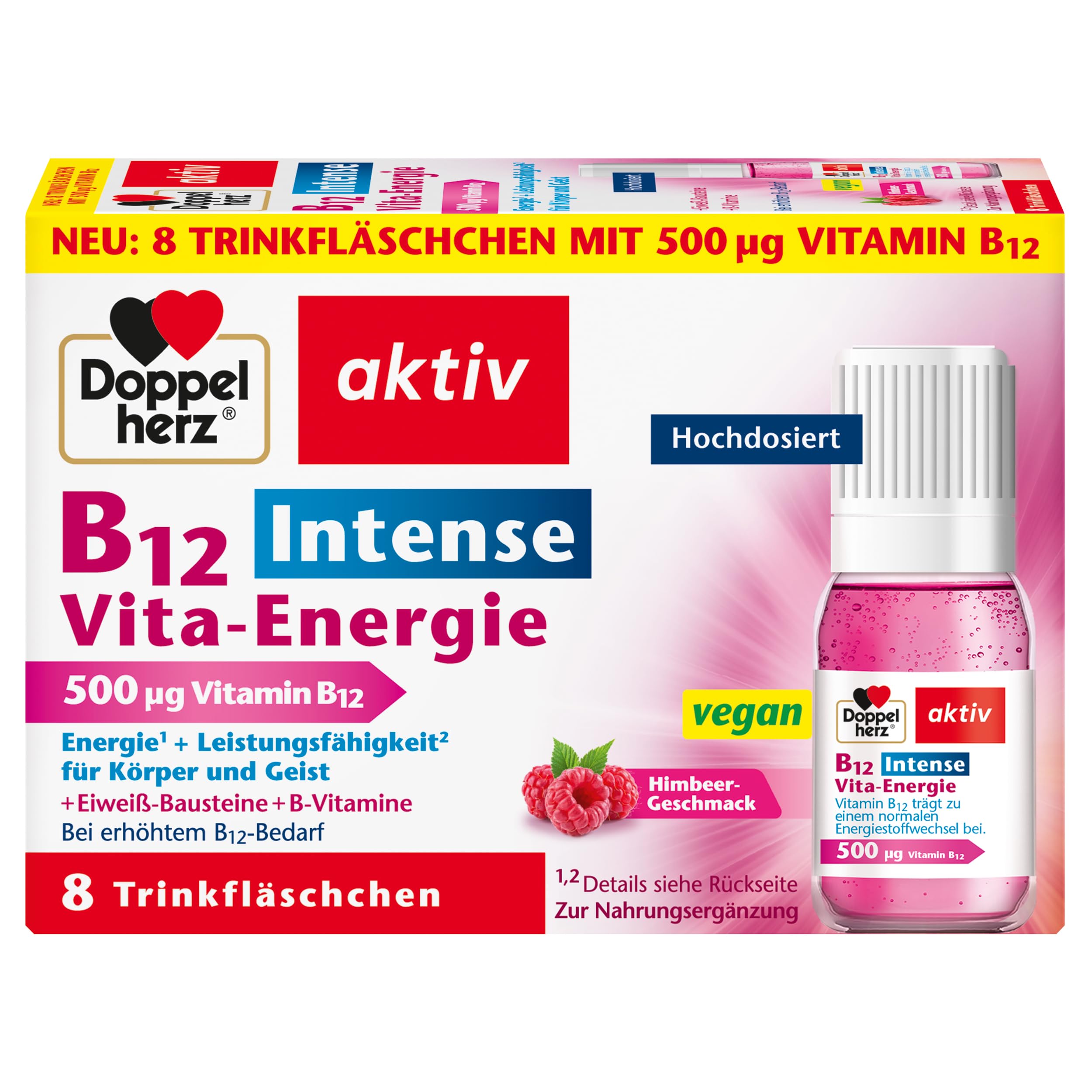Food supplements with vitamin B12, B1, B6, niacin and amino acids with raspberry flavour INGREDIENTS Water, fructose, isomaltulose , inulin, L-glutamine, L-serine, natural flavouring, acidifier citric acid, preservative potassium sorbate, preservative sodium benzoate, elderberry fruit extract, maltodextrin, niacin, anti-caking agent magnesium salts of fatty acids, vitamin B12, vitamin B6, separating agent silicon dioxide, vitamin B1 Isomaltulose is a source of glucose and fructose INSTRUCTIONS FOR USE Consume the contents of one drinking bottle daily. 1. Turn the cap to the right above the crack: the feeding chamber containing the powder opens. 2. Shake the drinking bottles well until the powder is completely dissolved in the liquid. 3. Twist up: turn the cap to the left and drink the liquid. SAFETY WARNING: Do not exceed the recommended daily dose. Food supplements are not a substitute for a balanced and varied diet and a healthy lifestyle. Keep out of reach of children. Not suitable for children, adolescents, pregnant or breastfeeding women. Protect from direct sunlight and do not store above 25 C. Due to the use of natural elderberry extract, color changes may occur during storage. This does not affect the quality of the product. View moreContents of delivery: 8 drinking bottles - food supplement with vitamins B12, B1, B6, niacin and amino acids with raspberry flavor - net content: 91.1 g (80 ml solution 1.5 g powder). Vegan drinking bottles: quickly and easily prepared as a drinking bottle - vegan - with delicious raspberry flavor. Performance: Vitamin B12 Vitamin B6 Niacin also contribute to the reduction of tiredness and fatigue. Energy: vitamin B12 vitamin B6 niacin contribute to normal energy metabolism. B12 HIGH DOSE: 500 µg high dose vitamin B12 in combination with three selected B vitamins and the protein building blocks L-glutamine and L-serine.Doppelherz B12 Intense Vita-energie, hoge dosis met 500 µg vitamine B12 per drinkfles, 8 ampullen, veganistisch 10 ml (8er Pack) Voedingssupplementen met vitamine B12, B1, B6, niacine en aminozuren met frambozensmaak INGREDIËNTEN Water, fructose, isomaltulose , inuline, L-glutamine, L-serine, natuurlijk aroma, zuurmiddel citroenzuur, conserveringsmiddel kaliumsorbaat, conserveringsmiddel natriumbenzoaat, vlierbessenvruchtextract, maltodextrine, niacine, antiklontermiddel magnesiumzouten van vetzuren, vitamine B12, vitamine B6, scheidingsmiddel siliciumdiose. xide, vitamine B1 Isomaltulose is een bron van glucose en fructose GEBRUIKSAANWIJZING Dagelijks de inhoud 1 drinkflesje consumeren. 1ste Draai de dop naar rechts boven het kraken: de voedingskamer met het poeder opent zich. 2de Schud de drinkflesjes goed tot het poeder volledig in de vloeistof is opgelost. 3de Opdraaien: dop naar links opdraaien en vloeistof drinken. VEILIGHEIDSWAARSCHUWING De aanbevolen dagelijkse hoeveelheid mag niet worden overschreden. Voedingssupplementen zijn geen vervanging voor een evenwichtige en gevarieerde voeding en gezonde levensstijl. Buiten het bereik van kinderen houden. Niet geschikt voor kinderen, jongeren, zwangere vrouwen en vrouwen die borstvoeding geven. Beschermen tegen direct zonlicht en niet bewaren boven 25 C. Door het gebruik van een natuurlijk vlierbessenextract kunnen er tijdens de opslag kleurveranderingen optreden. Dit heeft geen invloed op de kwaliteit van het product. Meer bekijkenInhoud levering: 8 drinkflesjes – voedingssupplement met vitamine B12, B1, B6, niacine en aminozuren met frambozensmaak – netto inhoud: 91,1 g (80 ml oplossing 1,5 g poeder). Veganistische drinkflessen: snel en eenvoudig bereid als drinkflesje - veganistisch - met heerlijke frambozensmaak. Prestaties: vitamine B12 vitamine B6 niacine dragen bovendien bij aan de vermindering van vermoeidheid en vermoeidheid. Energie: vitamine B12 vitamine B6 niacine dragen bij aan een normaal energiemetabolisme. B12 HOOGDOSEERD: 500 µg hoge dosis vitamine B12 in combinatie met drie geselecteerde B-vitaminen en de eiwitbouwstenen L-glutamine en L-serine.