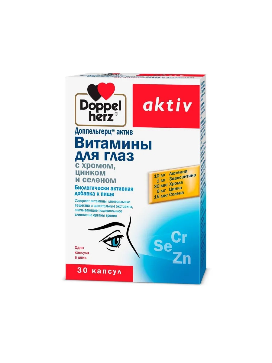 Doppelherz Витамины глаз с хромом, цинком селеном 1350мг 30шт -1 уп.