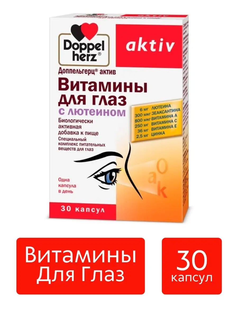 Для сохранения зрительной функции и предупреждения таких заболеваний как близорукость, катаракта, дистрофическое заболевание сетчатки, диабетическая ретинопания. Доппельгерц актив Doppelherz aktiv.