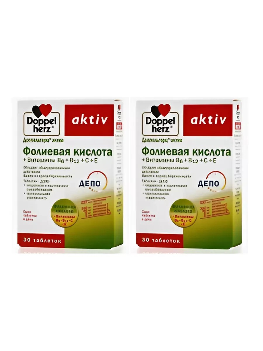 ДОППЕЛЬГЕРЦ Фолиевая кислота +В6,В12,С,Е 30 таблеток 2 уп.