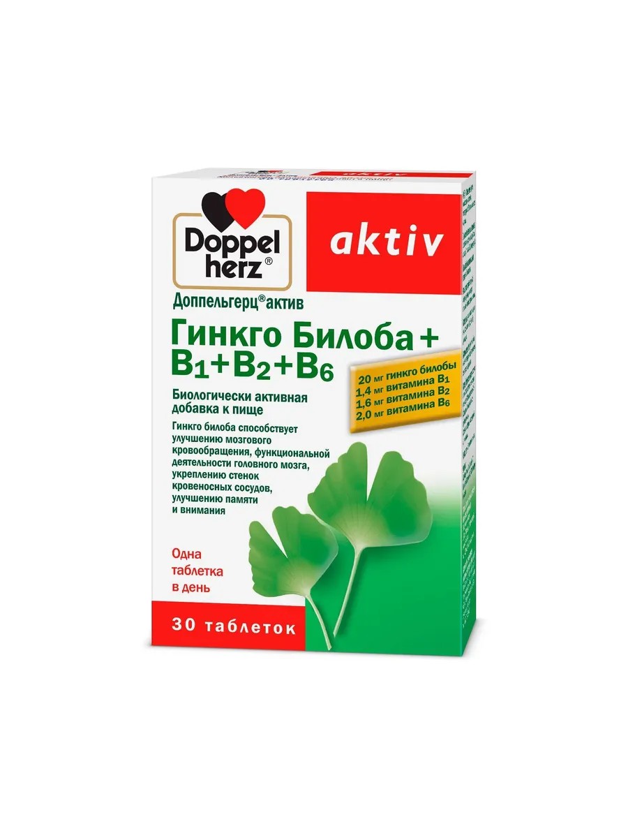 Doppelherz Ginkgo biloba+B1+B2+B6 Activ 0.28g 30pc -1 units