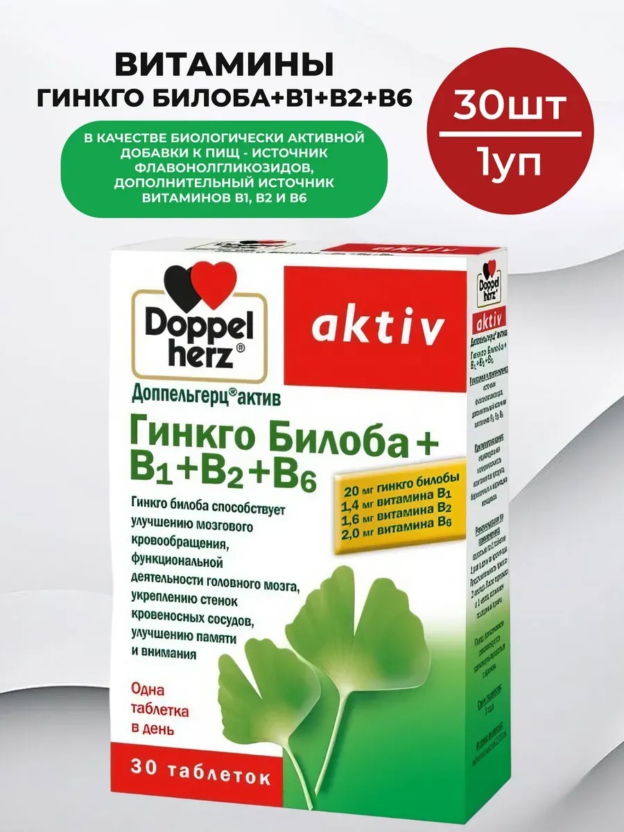 ДОППЕЛЬГЕРЦ Витамины гинкго билоба+В1+В2+В6 30 шт - 1уп